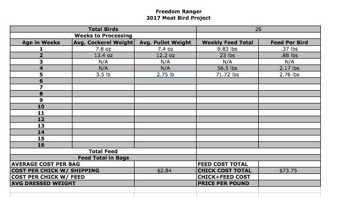 That's good to know about the free range aspect of it. I debated it and have still debated it in my head for future batches. I like the idea of giving them their natural environment to express their chickenness in while still controlling the amount of birds per square foot as far as nitrogen going into the pasture etc.. Them working off their body weight is something that hadn't really crossed my mind yet to be honest, but it makes total sense. I'm pleased so far with their weight gains. They're eating A LOT but they are also doing quite a bit of foraging. We have a couple different rye grasses, wild oats, peas, alfalfa and some rip gut all growing in that pasture and the really seem to enjoy most of it. Last I checked at the end of week 3, they were just over 2 pounds. A hatchery near me sells their version of the freedom ranger and they have a growth chart from day 1-70 and so far my numbers have matched their's very closely. They processed on day 70 with a live weight of 8 pounds or so. Looking forward to seeing the end results too.