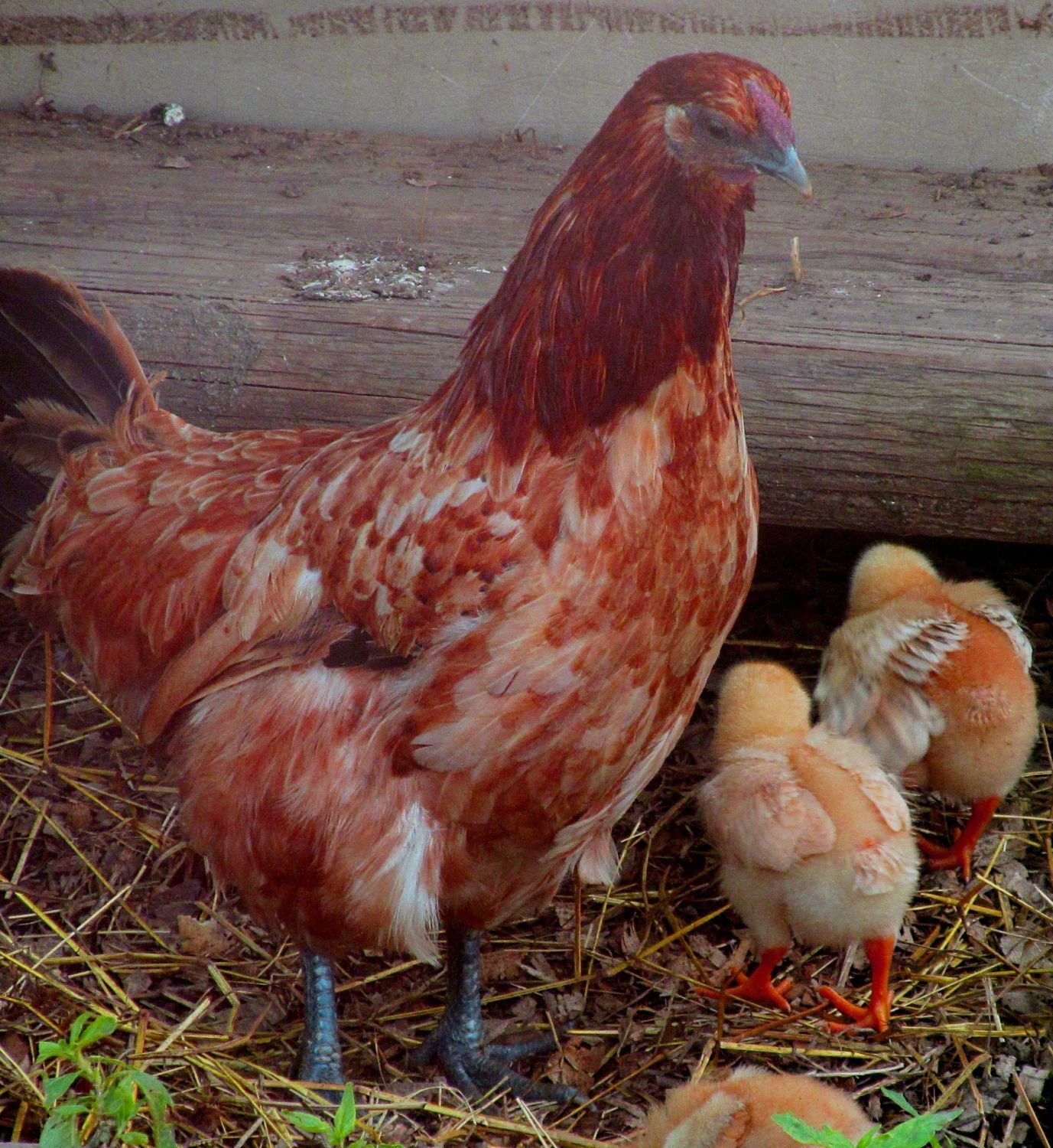Well -- like the rest of the archives, the opinions on this thread are both for, and somewhat against the FR. As I mentioned earlier, we intended to raise these birds to POL and hatch out some of the eggs. Here are the first three. I'm impressed with the overall size of the chicks and their width. The width is noticeable in the width of their stance as well as the width when viewed from the rear. These pics are at ~ 24 hrs old.
