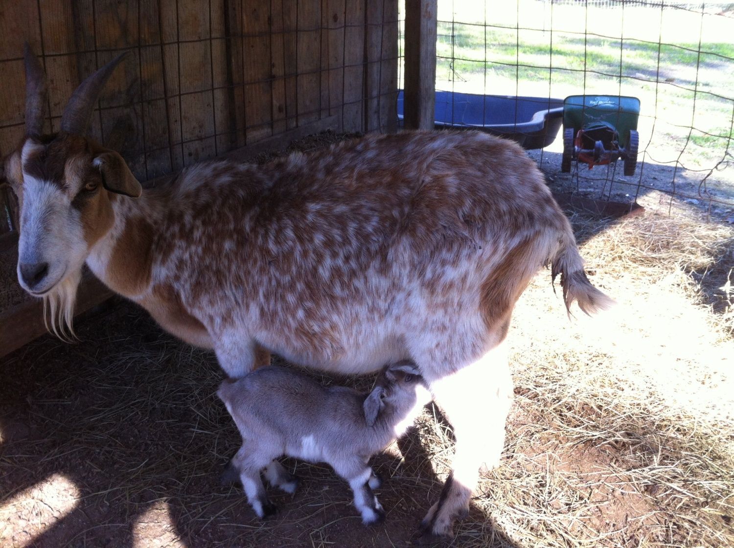 Three days old and on pennicillin :-/ i know how bad That sounds but thats why i took them. And thats why i learned how to give Shots. theyre at my house now, and not in the cold wet that they were born into anymore. Both kids were sneezing sick, and now theyre doin so much better! Im also treating his whole herd of 20 some odd for pink eye...