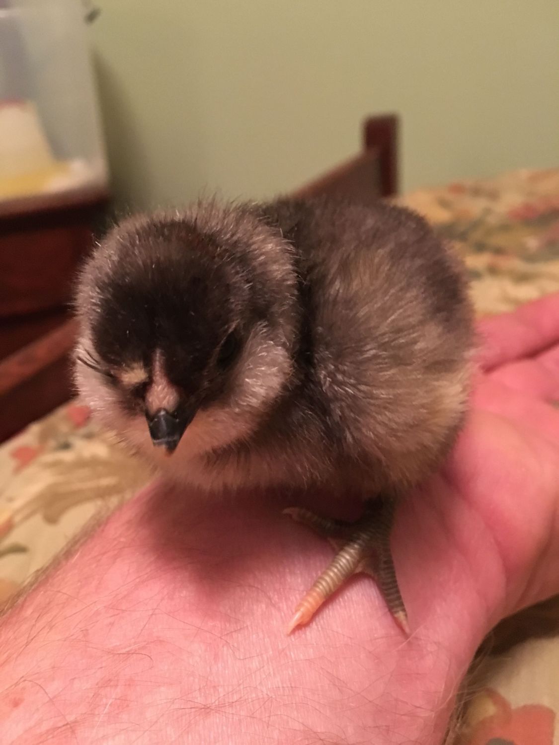 I put it pip end up in a cutdown individual carton, so the fluid would flow away from the beak. When I took it out to check, all the fluid was sorta crystallizing around the pip. But it did start peeping at me, so I think it will be good.I'll lay it back down before I go to bed, so hopefully it can zip on its own.
