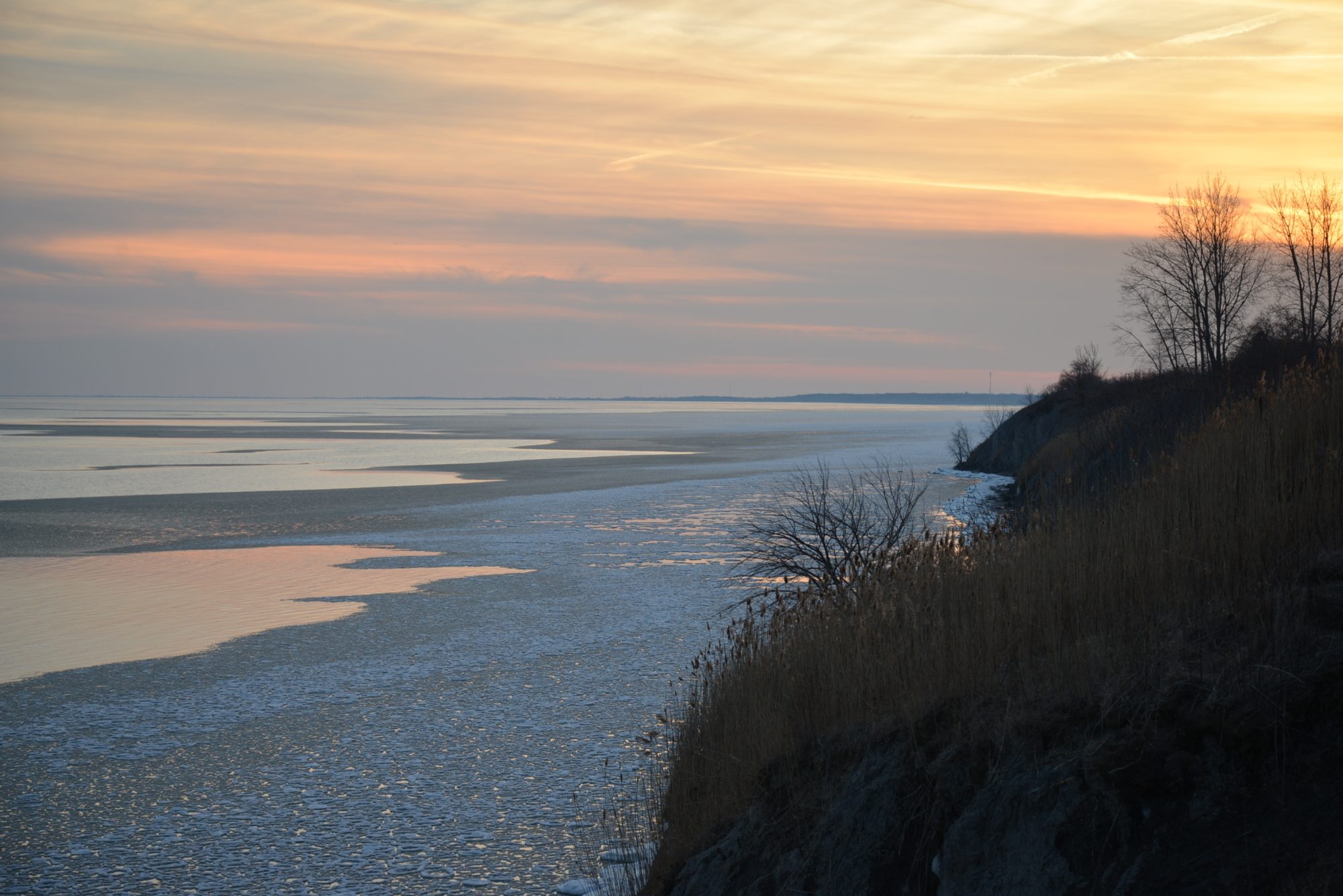 We've been in Canada for hockey tournaments three of the last four weekends...I love travel, and hockey, but it's a bit much. Just thought I'd share a couple of snapshots of Lake Erie today, end of January, from the southern Ontario coastline.