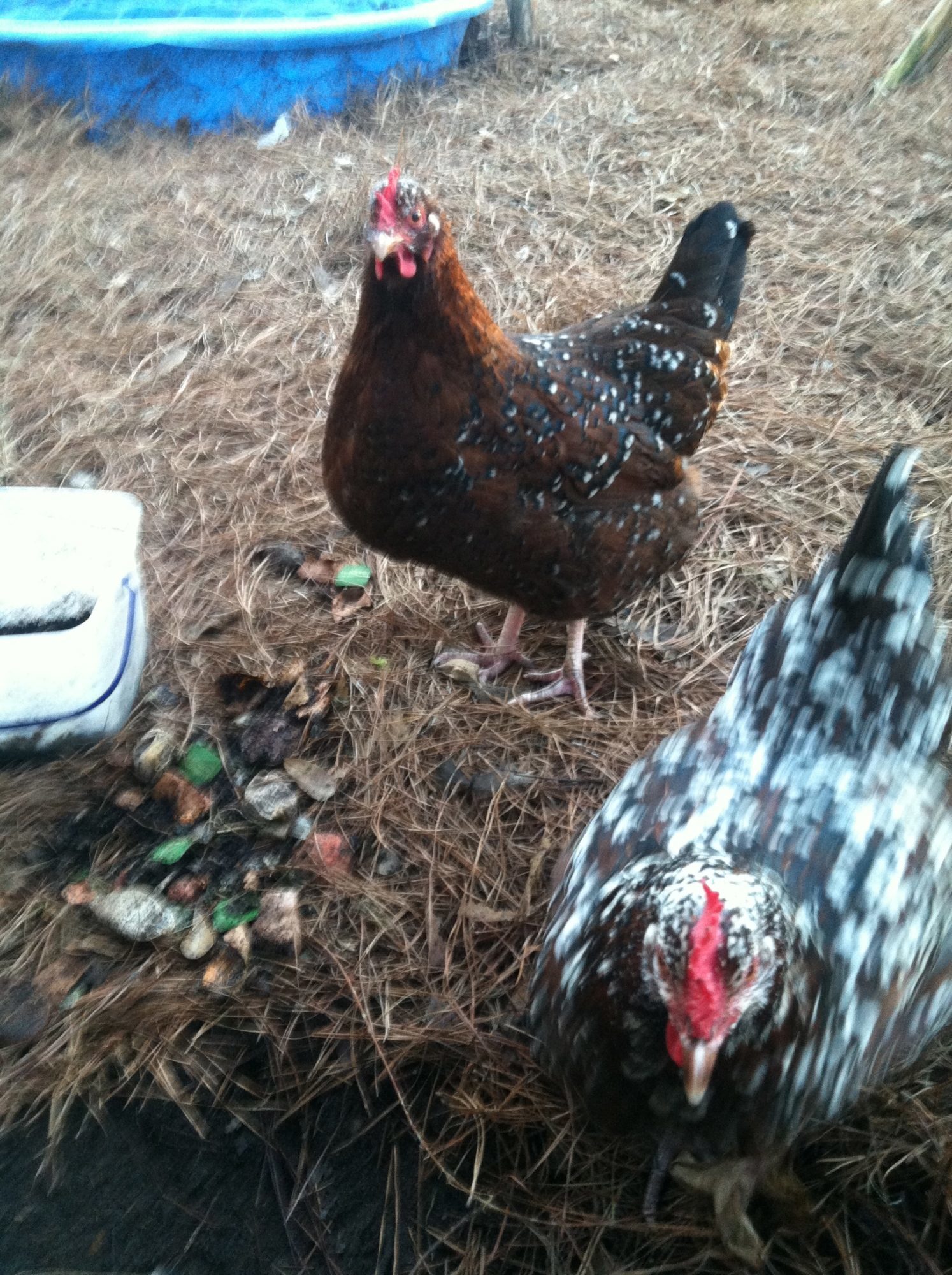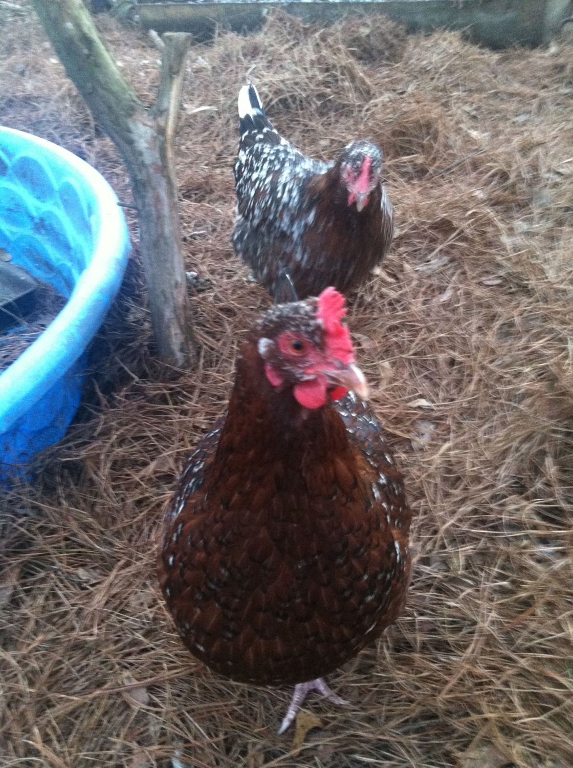 I have a 2 dark cornish roos and a hen. The hen isn't laying yet, but the roos think they are big and bad.