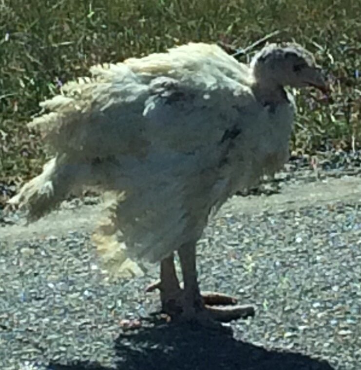 She found this little guy on the road and he evidently got blown out of the turkey truck. She calls me and asked what to do? I briefly explain the life existence of a Butterball to her and tell her this is a good opportunity to practice what she preaches. So she sends pictures and videos and text all evening and she finally decides to keep the little guy in the garage in something soft so it can die quietly overnight. She calls this morning and says the turkey is alive and she needs food and meds. She goes off to the feed store and, perchance meets a farm lady who offers to take the little guy to her farm and nurture it back to health. What a happy ending. You know that farm lady is going to fatten that guy up for Thanksgiving 2016!