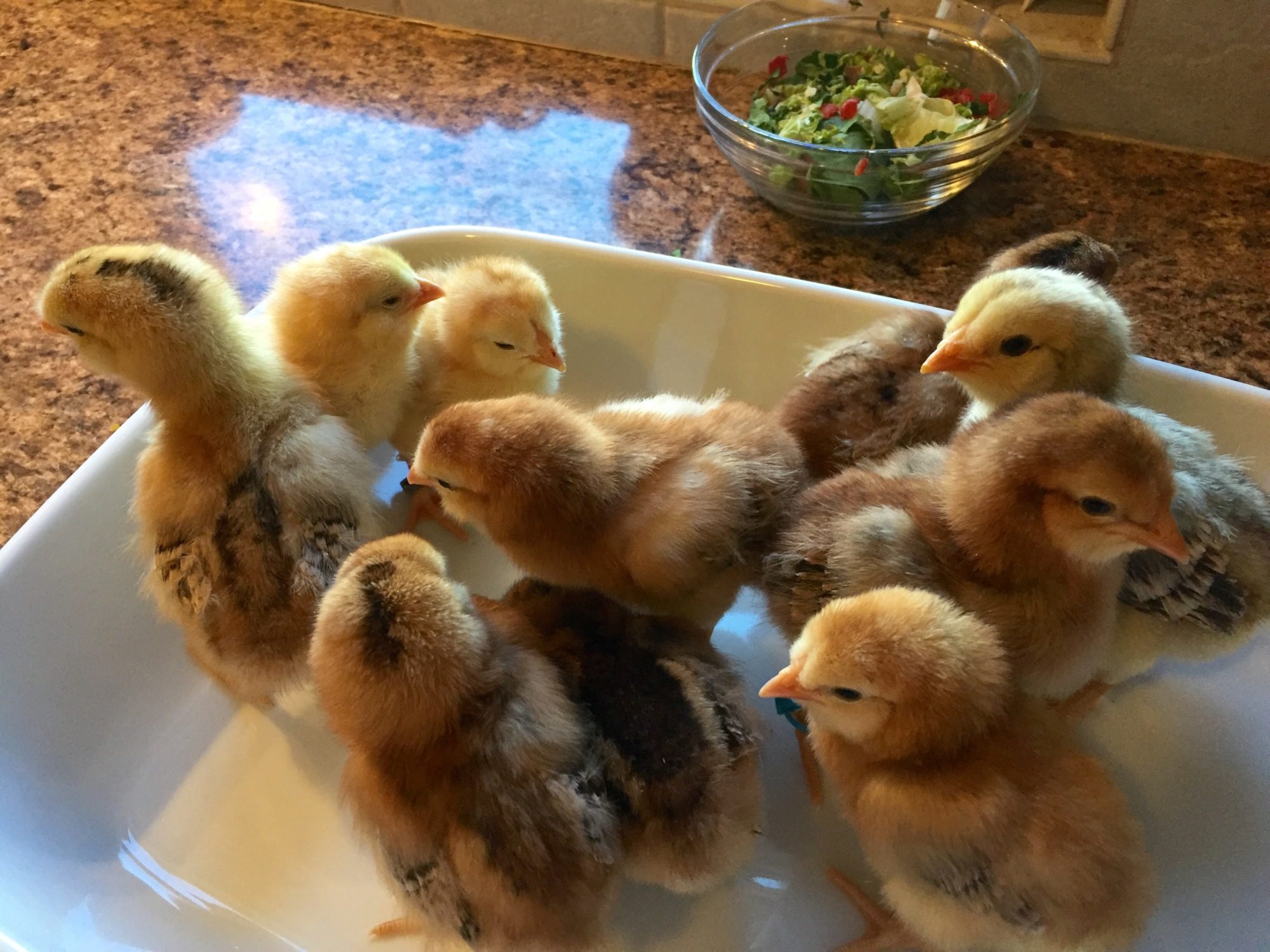 I was cleaning out the brooder tank and the freaking heat lamp broke! Thankfully it's not so cold right now, but I've gotta get kids up from nap to get another light, ugh.