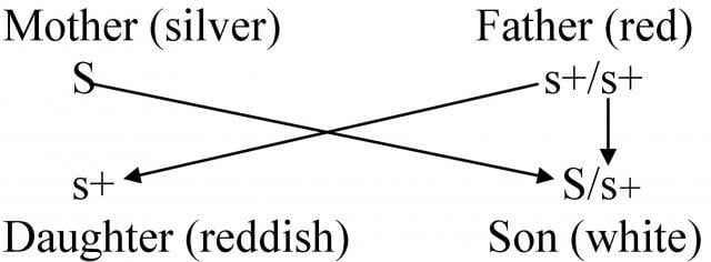 Silver rooster (SS) x gold hen (s+-) gives Ss+ (silver roosters) and S- (silver hens). So if I get a pair and breed them together I may endup with 25% gold.