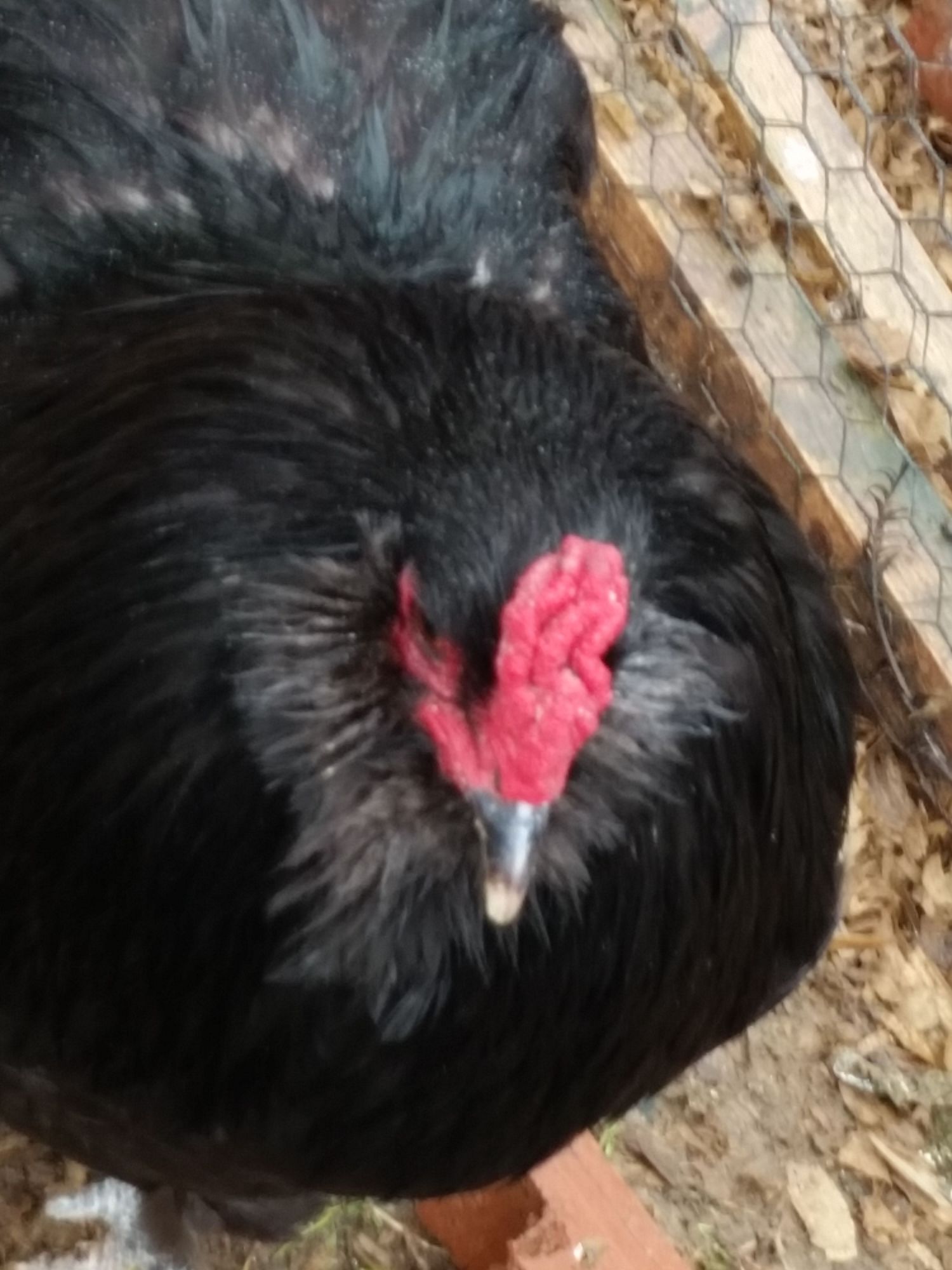Had to go grab a pic, sorry he was NOT cooperating... and there's a couple pecks on it, he doesn't like my Marans boy sharing a fence...