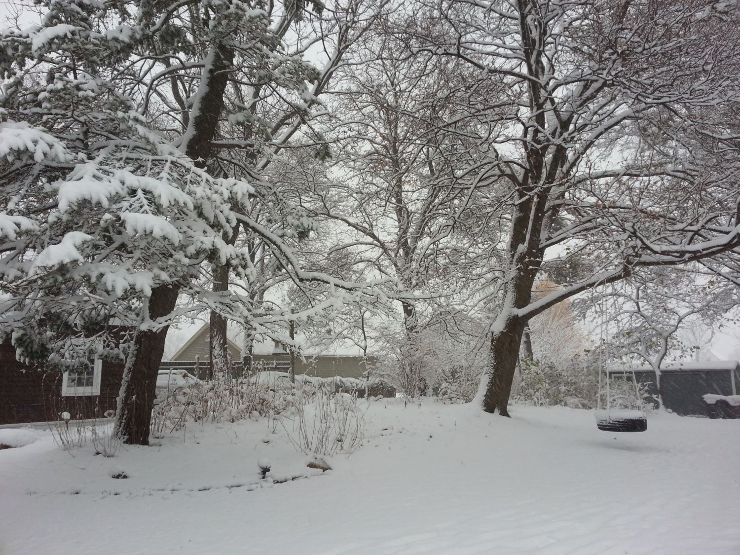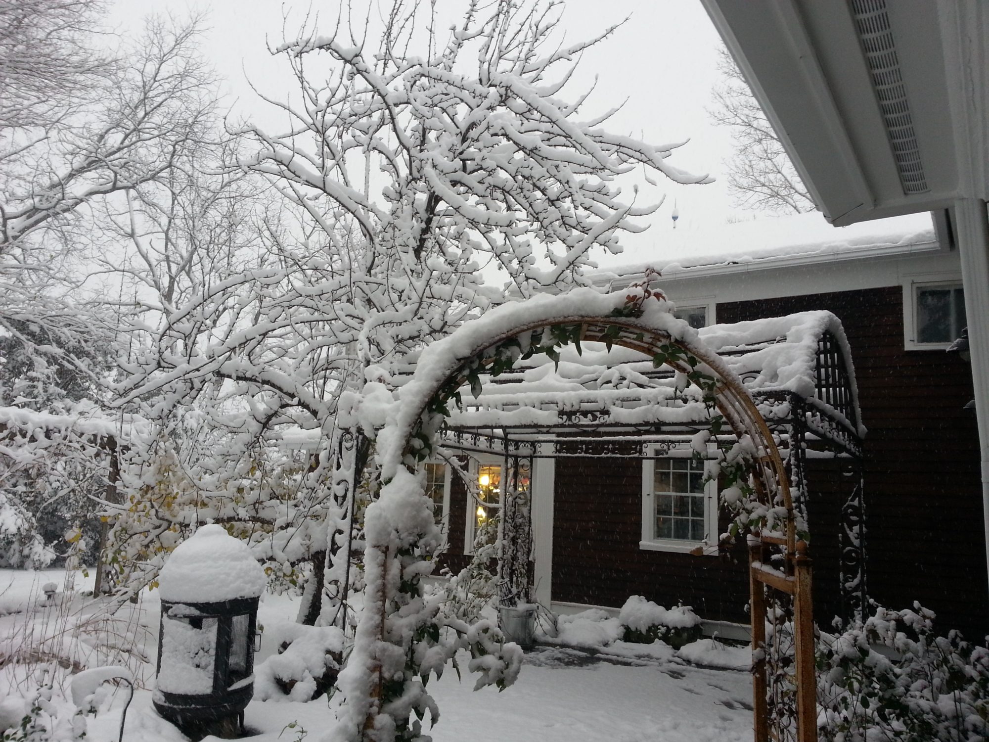 We went from 70F and picking the last tomatoes on Thursday, to this yesterday: