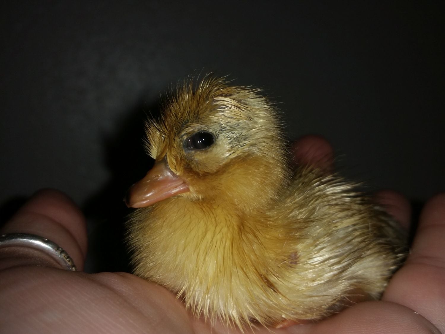 I've got an EE/Orloff with a big old pip hole, not just the little one I normally see. I keep thinking he's going to zip soon, because I can see his beak very clearly.