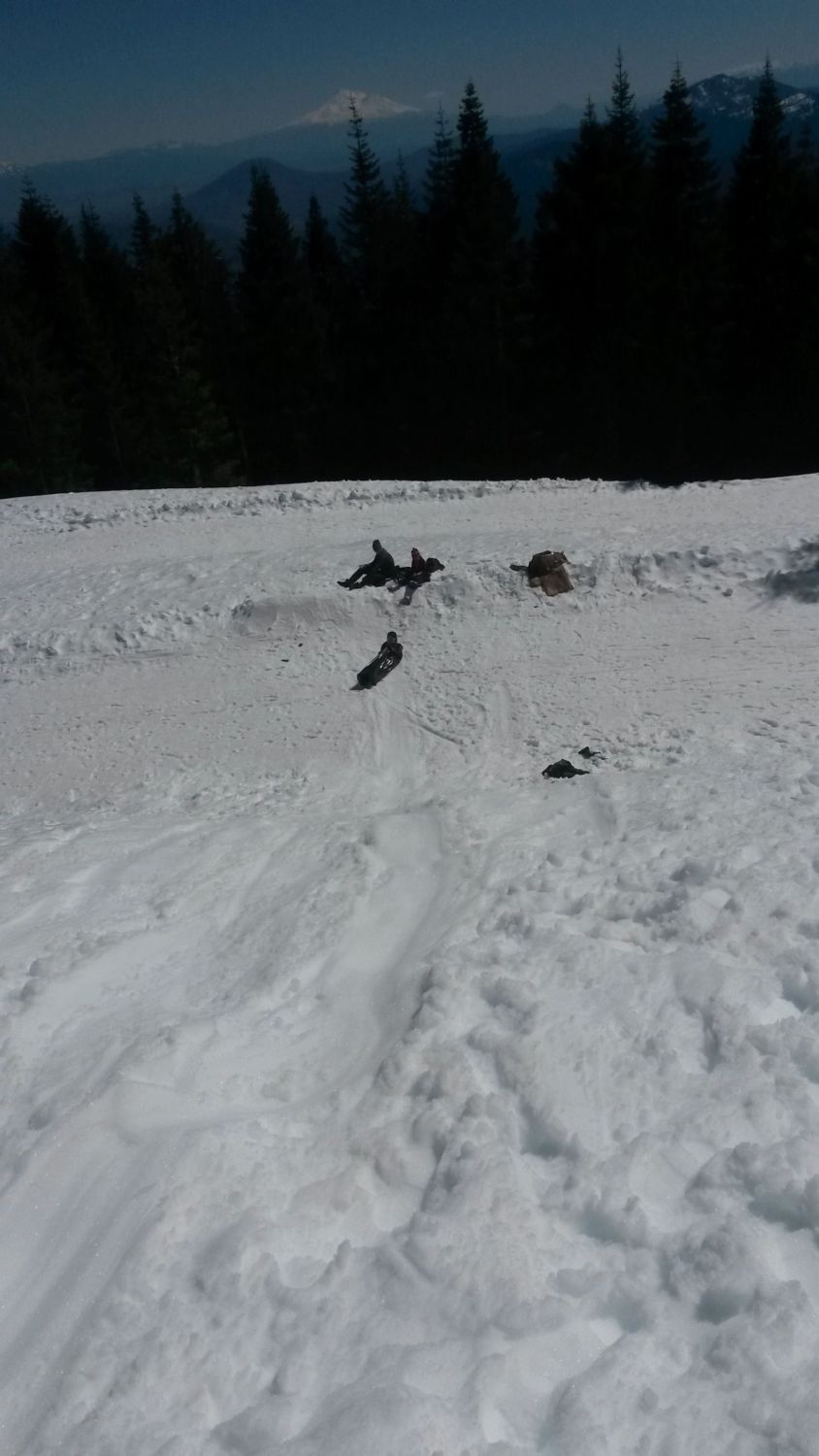 Sheesh, I did better keeping up when we were out of town than I have since we got back Congrats and commiserations as needed--not quoting a few hundred posts! I know the white stuff isn't exactly popular, but 1) it's special when you have to go 2+ hours away to play in it and 2) there's a near-teen in the pics Mr. P has a short video of me finishing a sled (contractor bag, actually--fast, but no steering) run and some chatting, though it was bright enough that you can tell he'd given up on the camera work He's out of town 'til the wee hours, but I might try to snag the video from his phone is anyone wants... We were on Mt. Ashland, and the mountain in the distance is Mt. Shasta. Yes, we had coats with us--they're at the bottom of the hill, 'cause it was fairly warm--the coats were just one layer too many Quite a workout going up the hill--not only was it steep in spots, but it was about 6300 feet, and I think the elevation at our house might be in the double digits... My husband got a little nervous the time I went over the embankment and landed in between the plowed roads--beyond the second road, it's a thousand foot drop past that edge there (I was the only one that went that far, and that was just the once. Most of the runs ended about where Faith is in the third-to-last photo).