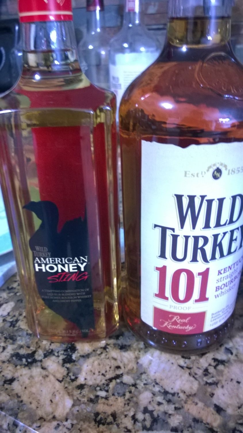 I didn't even notice!! One is a very seriously low bottle of 101, the other is black rum