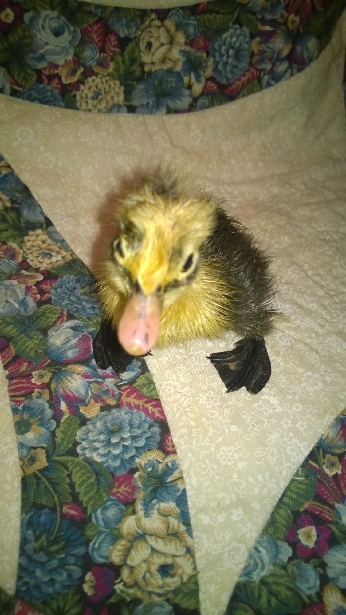 I like the hot water bottle idea! I did that once with transporting a chick, but it was a single. I would just take the bottle out before you get out of the car. Lol. Oh my goodness!!! I love the black feet! Duckie feet are so adorable!! I wish I could give him a kiss! That is so super cool!! Chicken friends are good people! :fl I had a question but you already posted the answer. Don't give up hope yet!