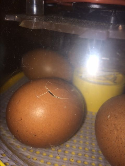 I also have another Silkie, Lily, sitting on 4 eggs, but those were started 4 days later. One may have gotten scrambled last night though. I pulled her out of the next box to eat and an egg came with her. It dropped down an inch and hit the brick and then another inch or two and hit the floor and then it rolled some. No cracks, but it went for a ride. I'll have to candle it again in a few days.