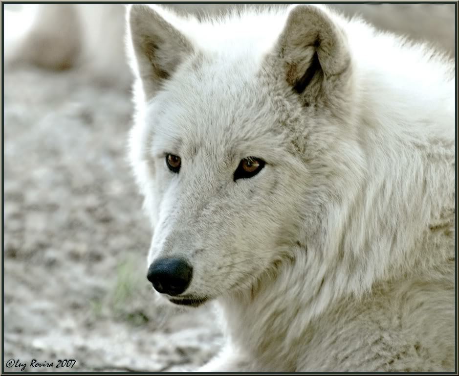 Pic. White ghostly wolf. Muzzle strained from blood usually.