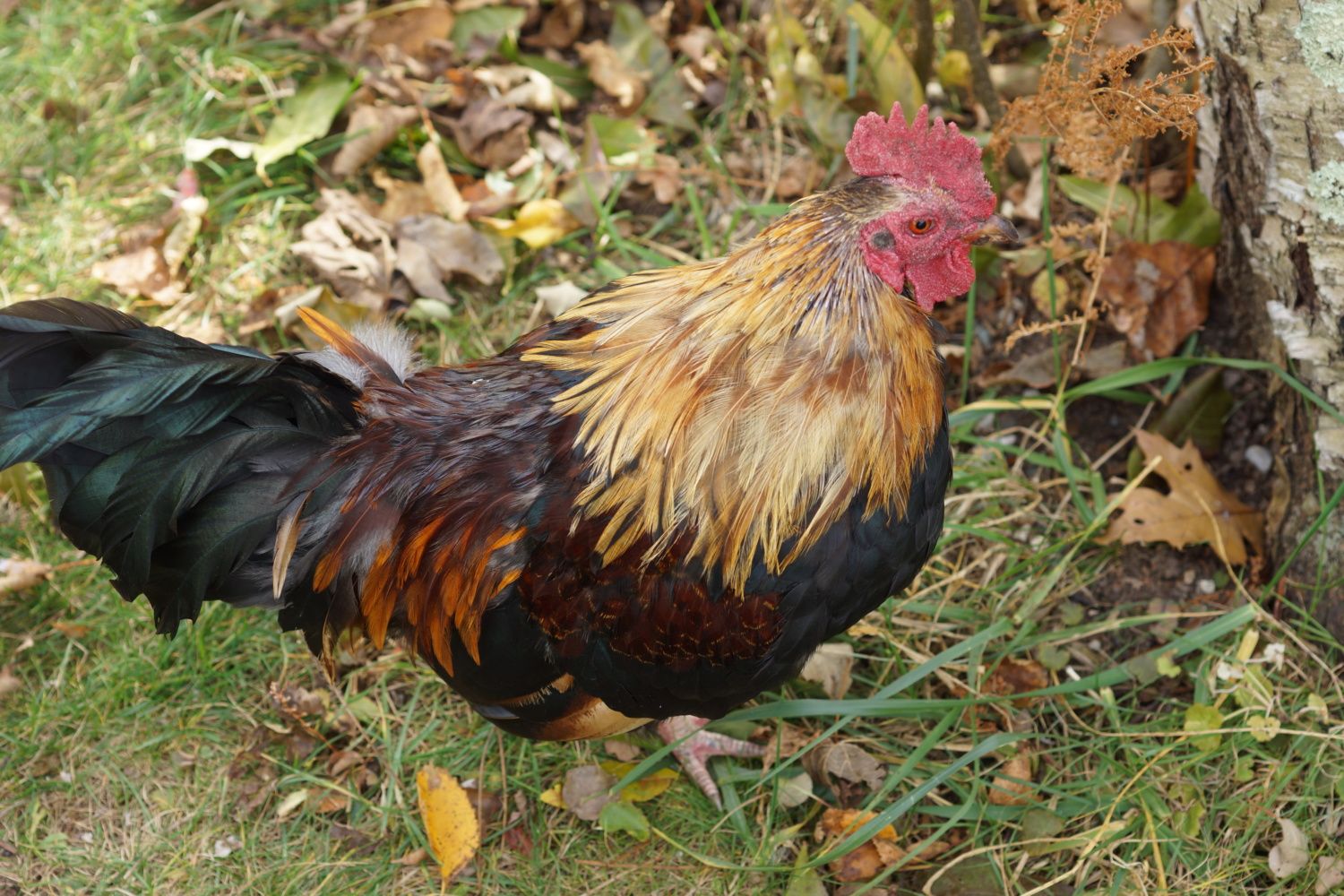 This is a mixed breed roo I hatched this spring. He is a buff chantellar blue Cochin cross.