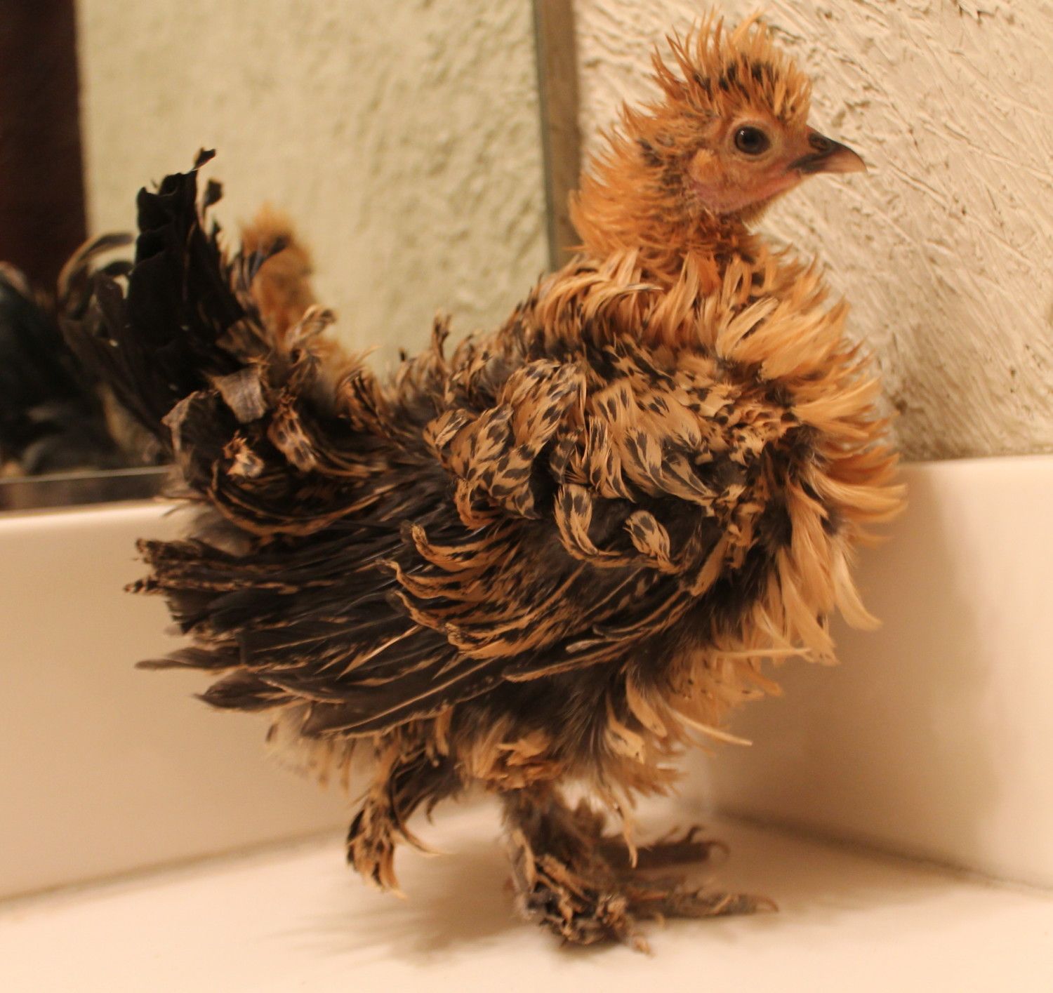 I have been waiting for over 4 years for a frizzle faverolle. I finally got a little guy who is an EE/Ameraucana mix with Faverolle (fifth toe on both feet!) and curling up wing feathers. Im so pleased and cant wait to see how beautiful he turns out.