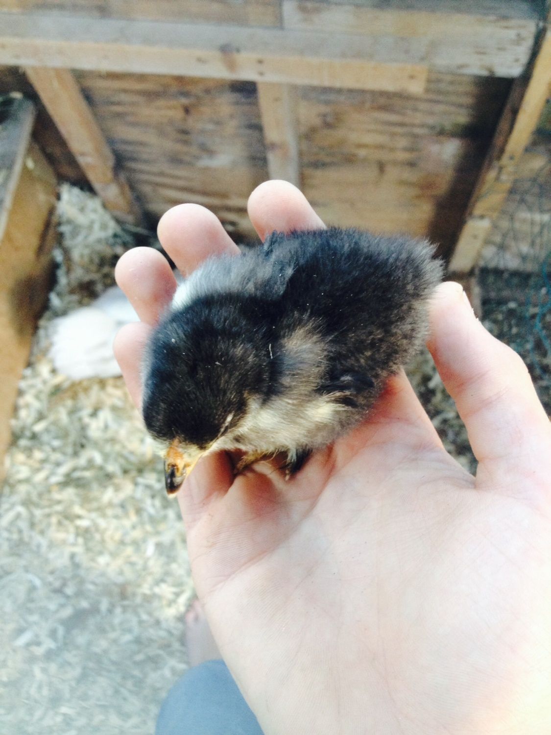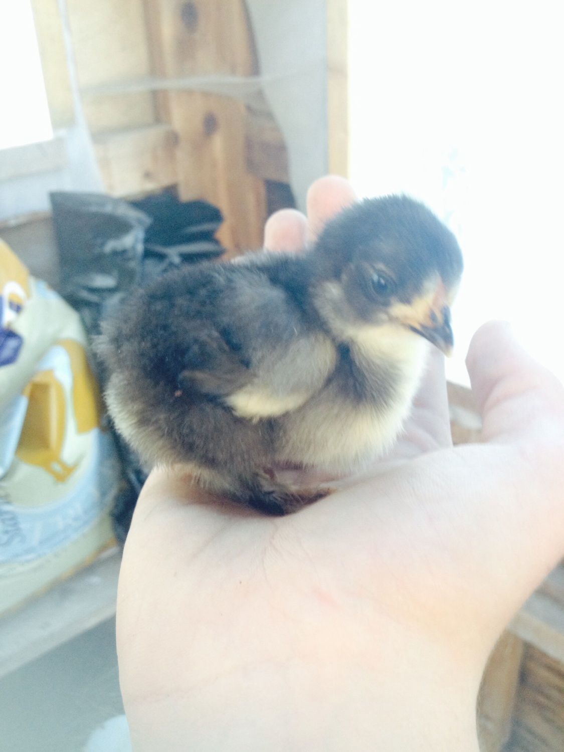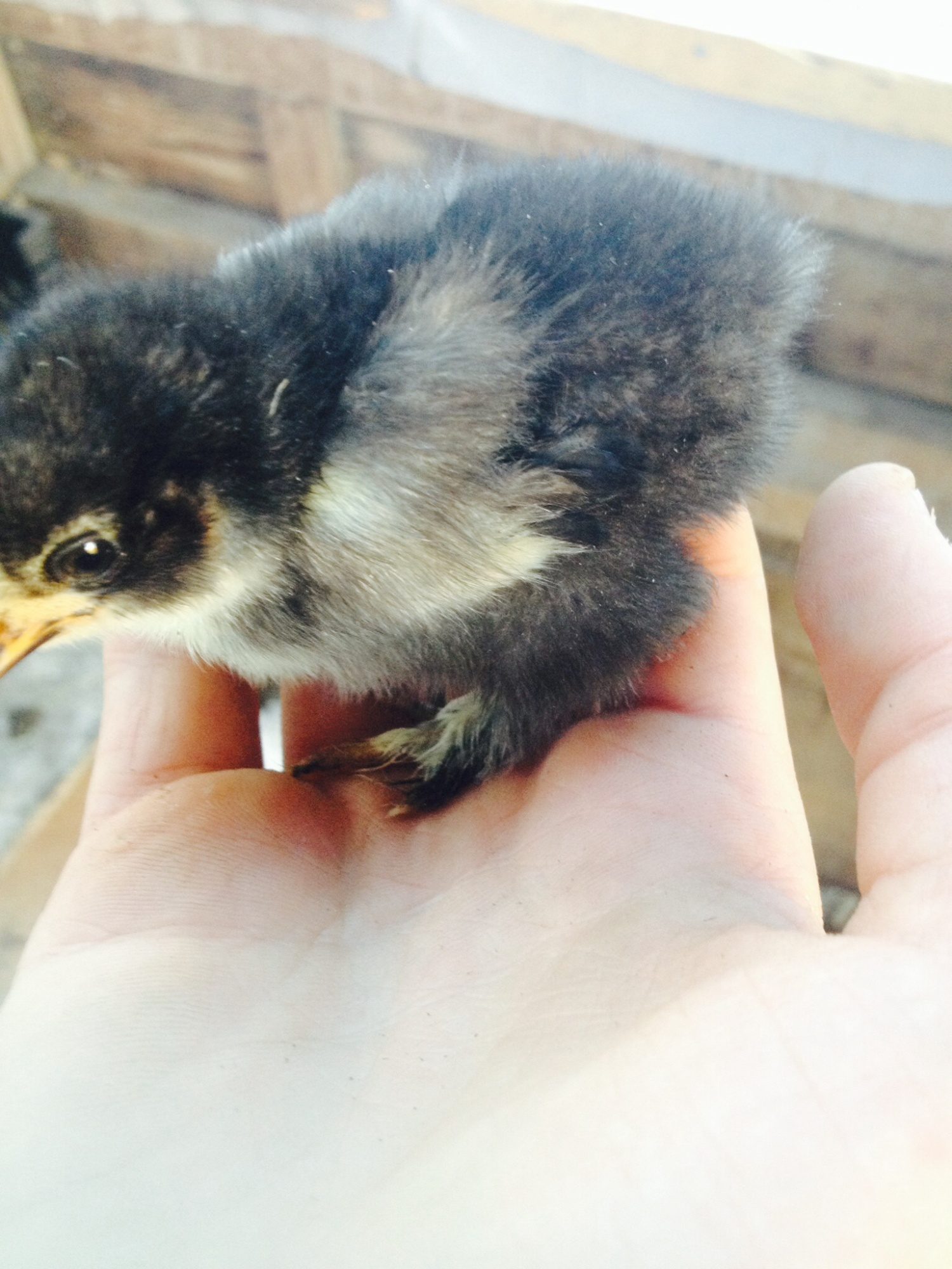 This little one is also 2 weeks old but feathering out a lot slower. I think I am seeing Frizzle feathers but leaving it a bit longer before saying for certain. It's colour is what has me intrigued .. it is like a silver/grey. Your thoughts on what colour to call it would be appreciated. I posted some pictures on another thread and some comments were that they thought it was in black and white! lol. So took some next to a watermelon to show colour