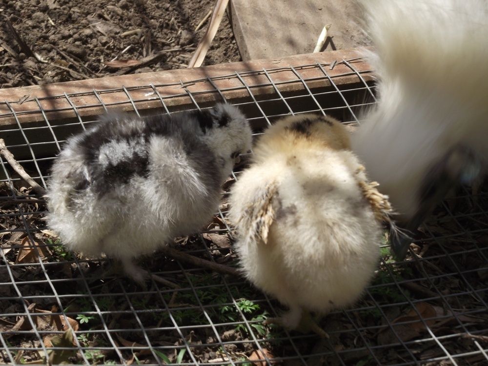 Last evening when I had the chicks out handling them I caught my wife about to yank out a feather that was sticking out. When we looked closer the feather was sticking out naturally. Just one feather-how weird is that? One of my poorer quality serama hens has gone broody so I gave her what frizzle eggs I had (only four). It's a different rooster this time; we'll see...