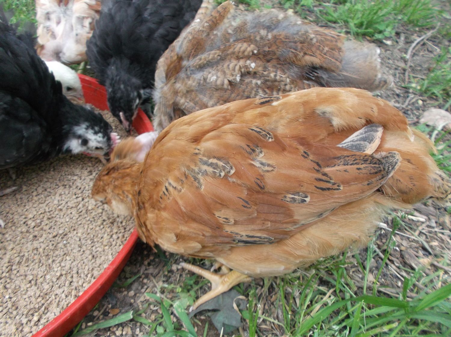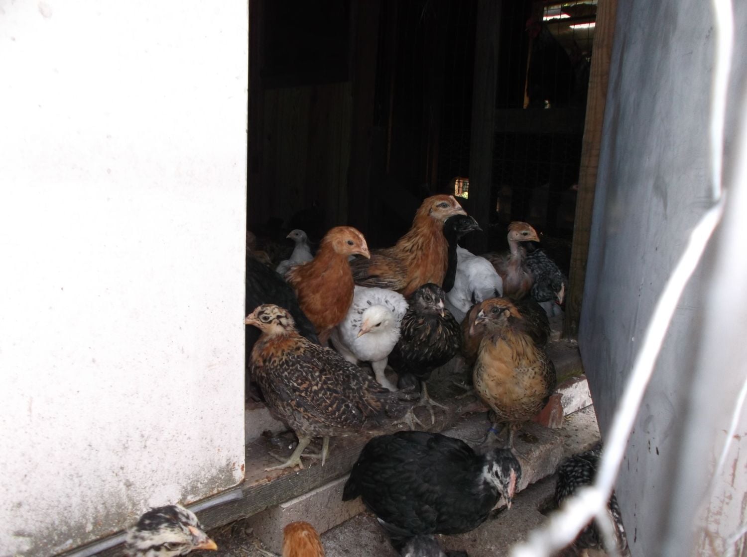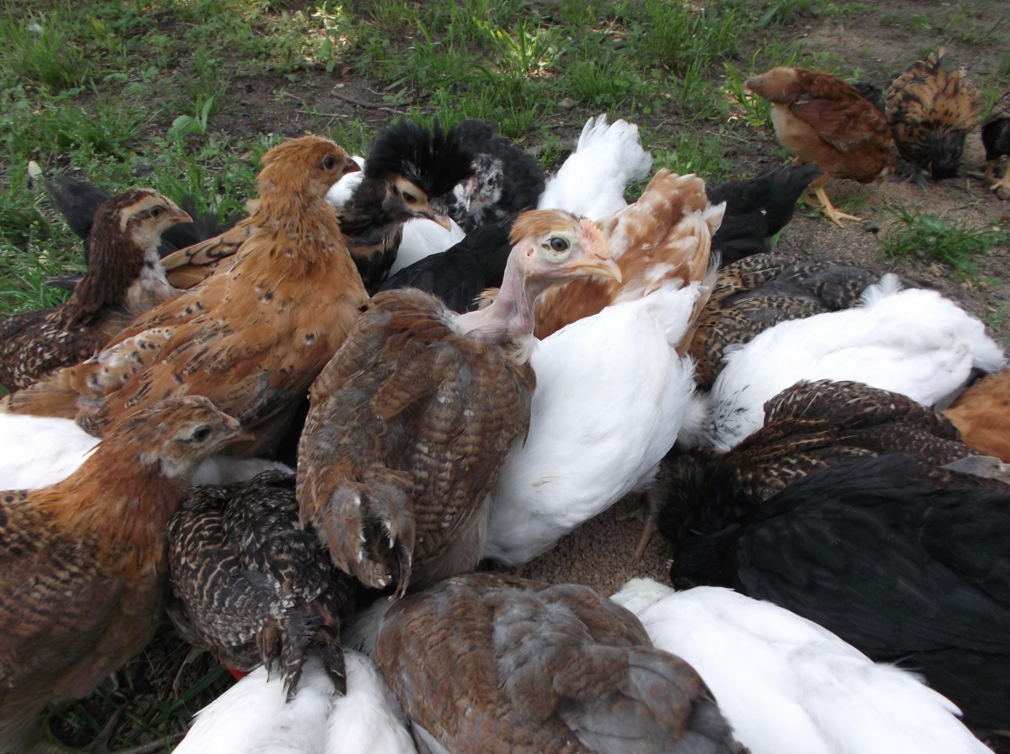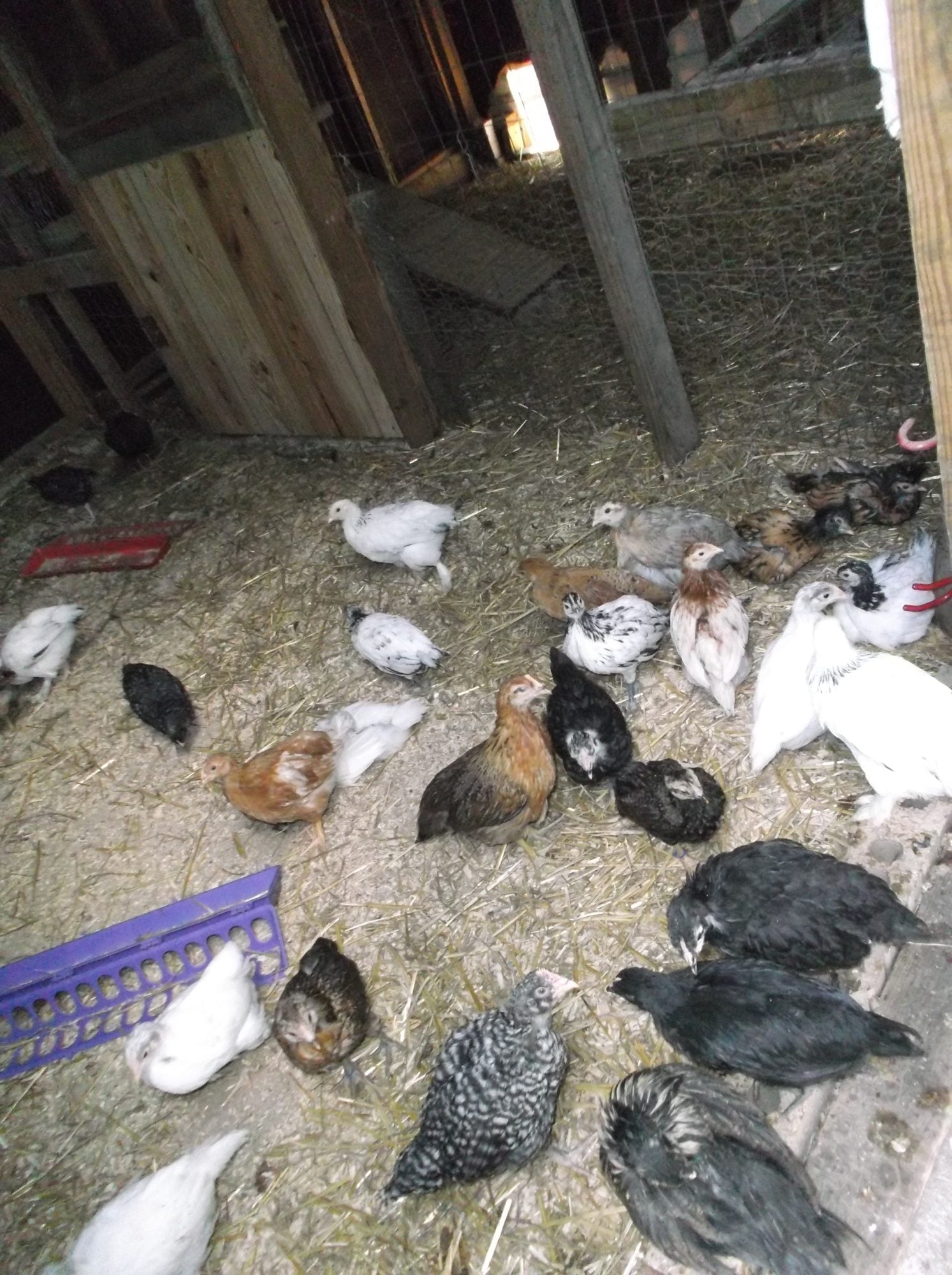 Here is a post just for fun! Want to help me figure out what they are? They are a month old now and feathering out so well. I ordered 5 breeds but changed the order a week before so I don't remember what they are! Plus we had our surprise which has turned out so cool and fun! I know I ordered Easter Eggers, Light Brahmas, and Marans. Of my surprise I sold 4 Egyptian whatevers (tiny babies) and 6 mixed bag standard cochins.