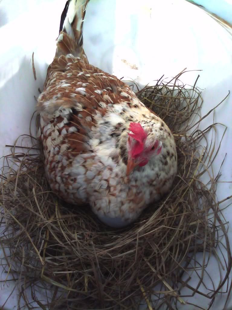 I see you're scrambling my offspring. Care to share? - Piggy pecked on the door every morning and waited on her scrambled eggs. She was a mite spoiled...