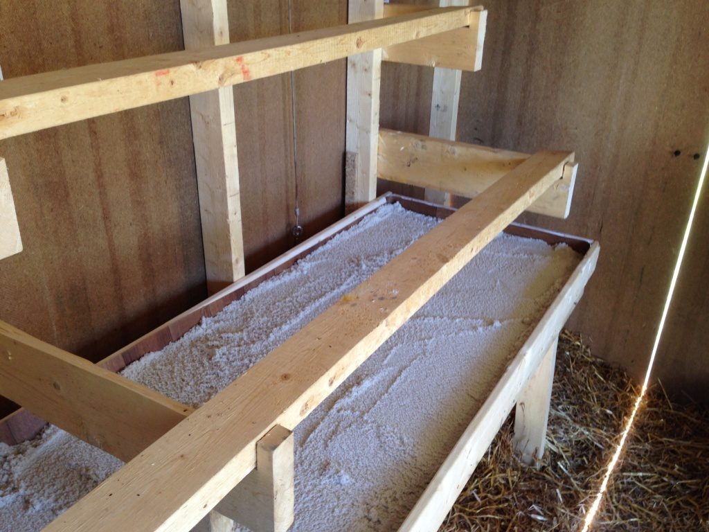 the nest boxes from the outside looking in. Lined with some vinyl flooring. Haven't put the bedding in there yet, my oldest are just 7 weeks, I have time:
