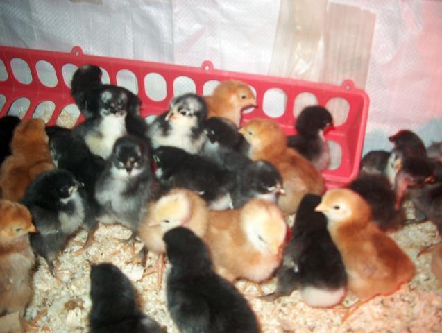 Here they are as of this morning!!! In the garage in a brooder: (there is plexiglass on the front of the brooder for those eagle-eyed BYC'ers who check for drafts)