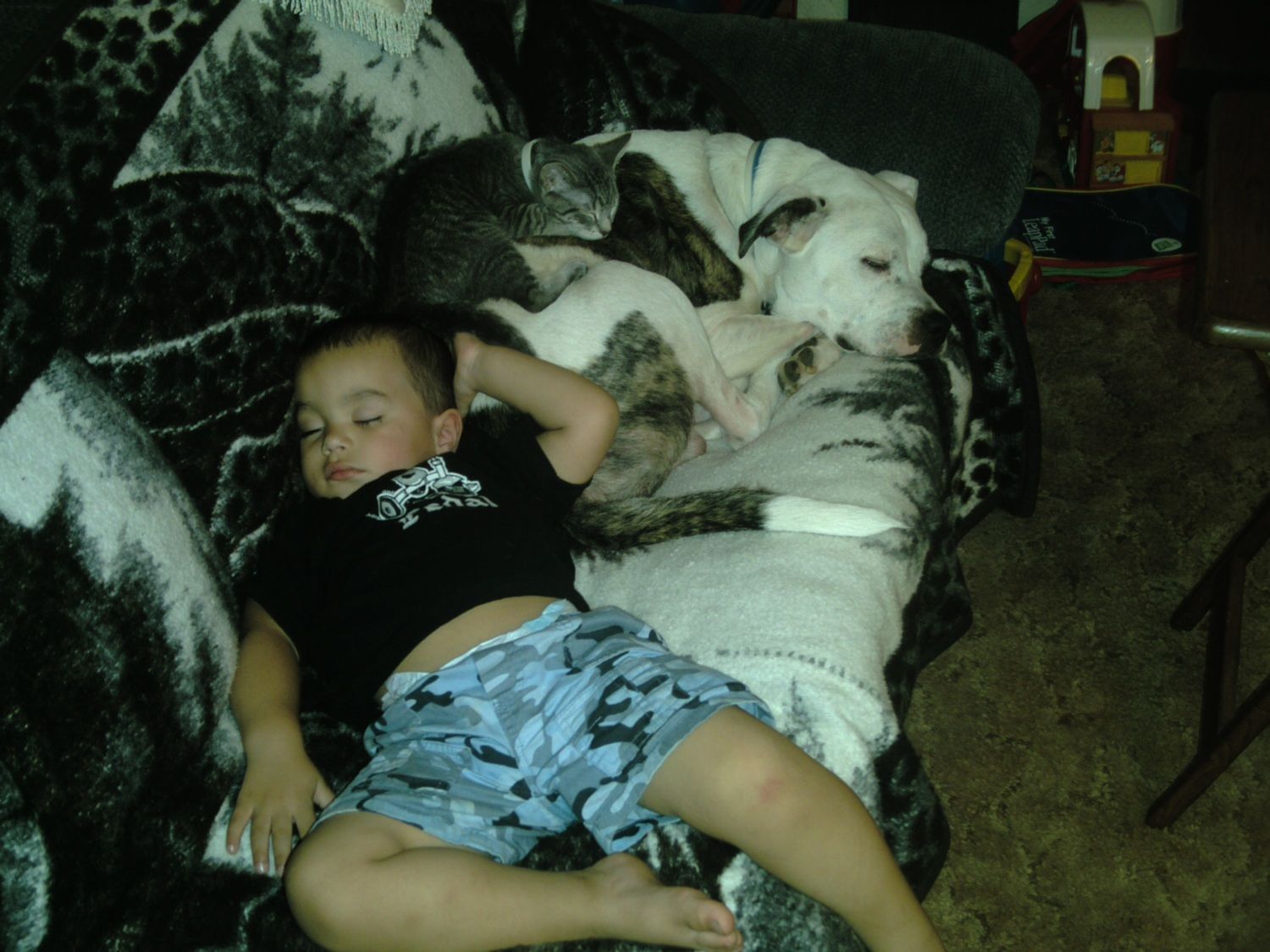 The worse moment my I had with my dad was when I went to fetch him from his long walk. I caught up with him a mile before he got to the lake. He was going to go and drown himself. He couldn't shoot himself, we had already gotten rid of the guns. I know he was thankful weeks afterwards... But at the time, it was a real struggle. Aiden, my youngest, when he came along, my dad had some one to live for. Not kidding. He loved Aiden with a passion. Aiden just about died being born. My dad was in the delivery room with me, yeah, and he was in the corner praying. Aiden was the reason my dad admitted himself so many times to the psych ward. So he'd get better, adjust his meds when needed. Keep himself under control. If the heart attack hadn't taken him from us 2 years ago this month, I think he may have been a much happier person because of Aiden. But the nearly two years that he had with my baby really made a difference. He was able to find happiness, and when he got very depressed he was able to bounce back easier because he had something of importance to him to bounce back for.
