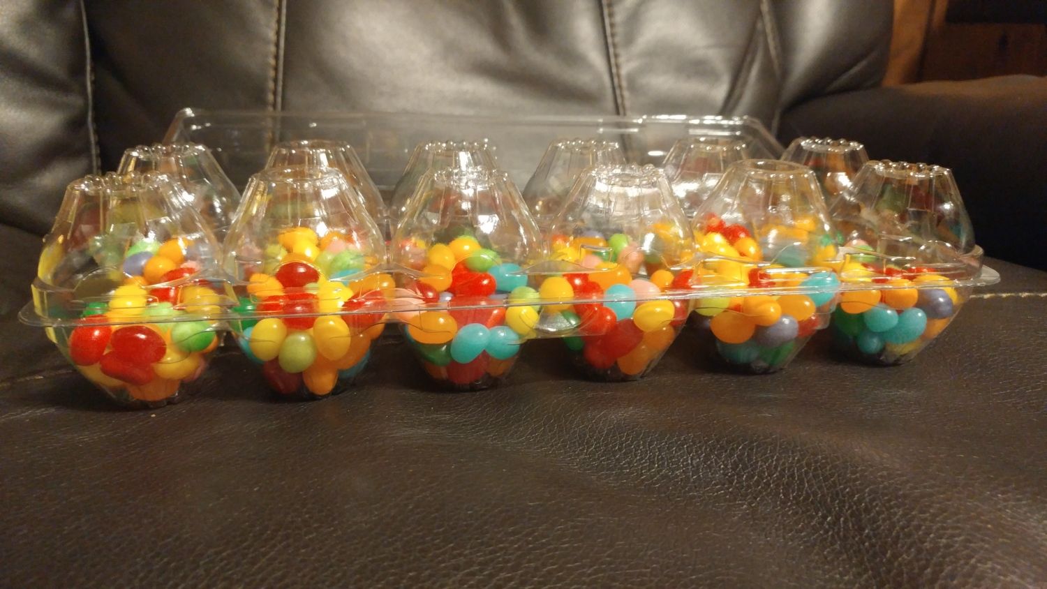 Today's game will be a guess the number game. Simply guess a number between 1 and 400 based on the picture below. I will count how many is actually there when I get home tonight from work. The winner agrees to pay $25 to cover shipping costs, playing the game is free. whoever is closest to the exact number of jelly beans without going over is the winner.