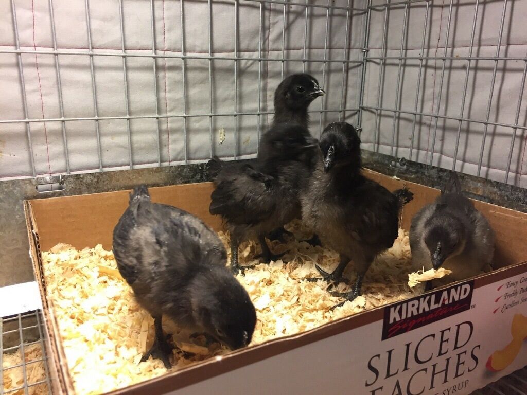 12-day old chicks from cjwaldon's eggs. Six hatched but one didn't survive. These five are doing great.