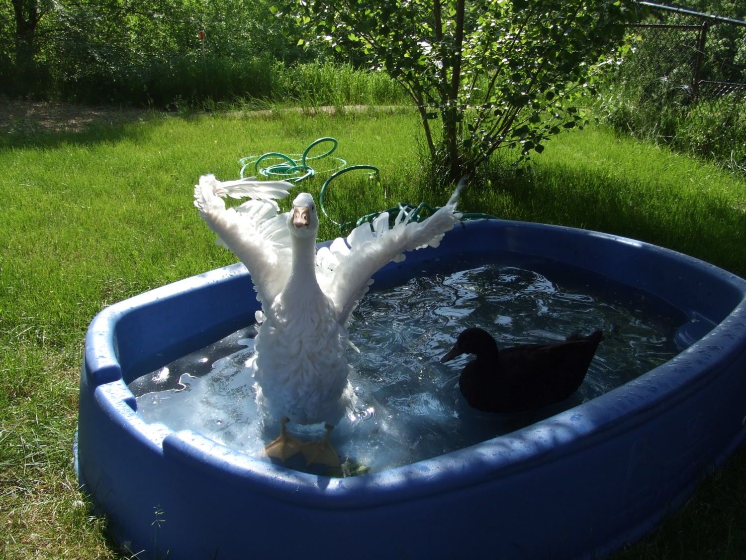 I was sitting watching my 2 this morning, my gander doesn't do these things maybe because he was raised with ducks I don't know but Missy my goose was chewing on the shingles on their feeder house, I picked up some gravel and started tossing them at her behind till one touched her and of course she didn't know where it came from, but it did get her away from the shingles. She is always nibbling on something.