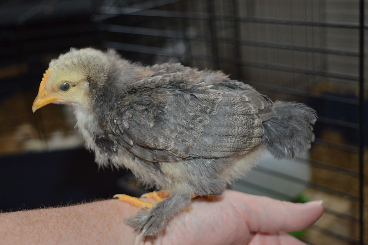 Silkie light brahma mix? RoosterThis is a very fun thread! I've got one to stump everyone (perhaps). We had a little cross breed that we had to find a new home for but I know exactly what the two breeds were and neither is unusual though the colour of one is rarer. It's not difficult to guess it's gender!Here's the little one at less than a day old