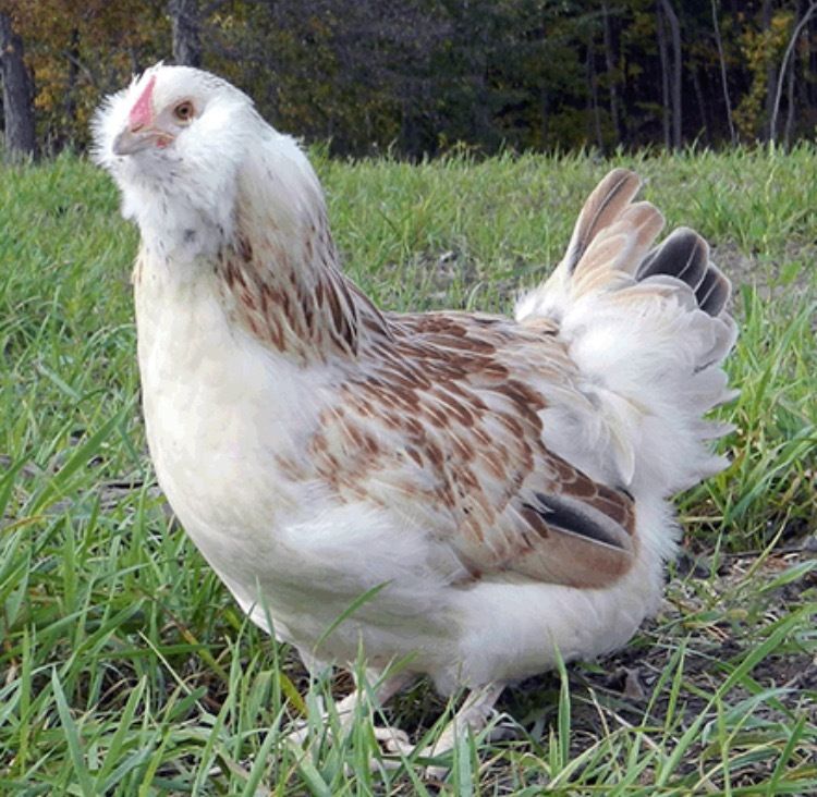 She's cute! I'll keep that in mind when I'm looking for chicks in the future.I had 2 Salmon Favs. This is the one I still have, Crouton. She looks like she's on drugs right now without her beard. She's starting to warm up. But both of them were so skittish and SCREAM when I pick them up. Not sure if I would recommend or not. Just not friendly, and lay eggs about every other day and this one's eggs are just off-white and not particularly pinkish. I mean, I like her--she's just not friendly. FERAL CHICKEN.![]()