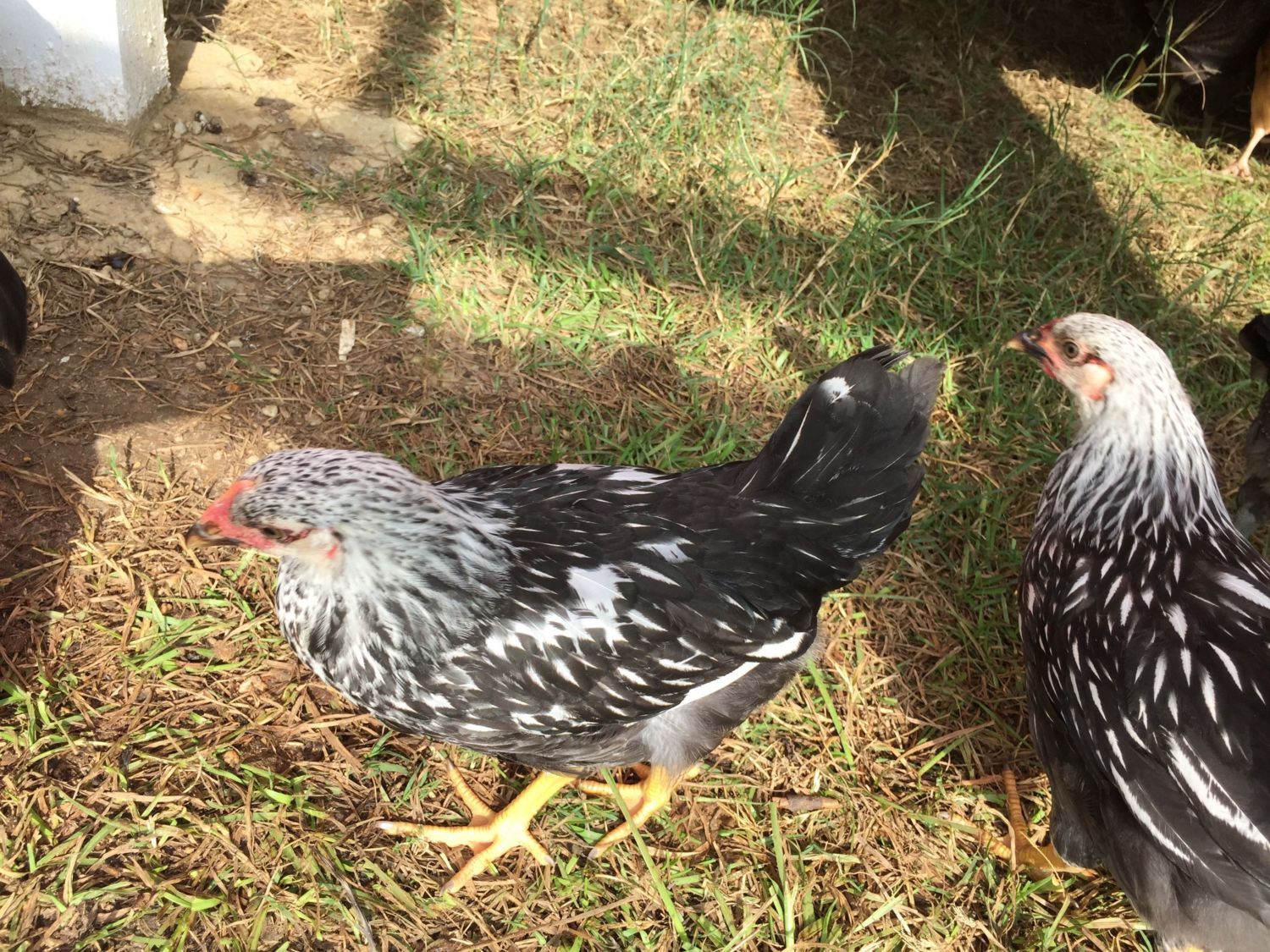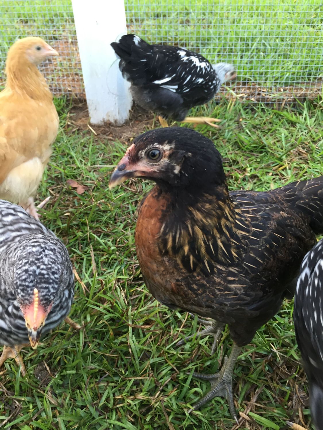 Everyone in your pictures is female....except, I'm not positive on the silver laced Wyandotte in the background here. Those white patches on the shoulder can be poor hatchery quality lacing, or they can be cockerel coloring. Can you get a profile shot of that bird, including the comb?