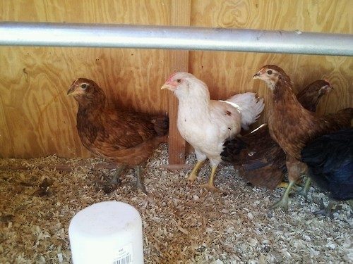Now, I have five mutt chicks. Their mothers are either (1) Production Red (2) Golden Sex Link/Gold Comet or (3) GLW or Golden Laced Wyandottes.
