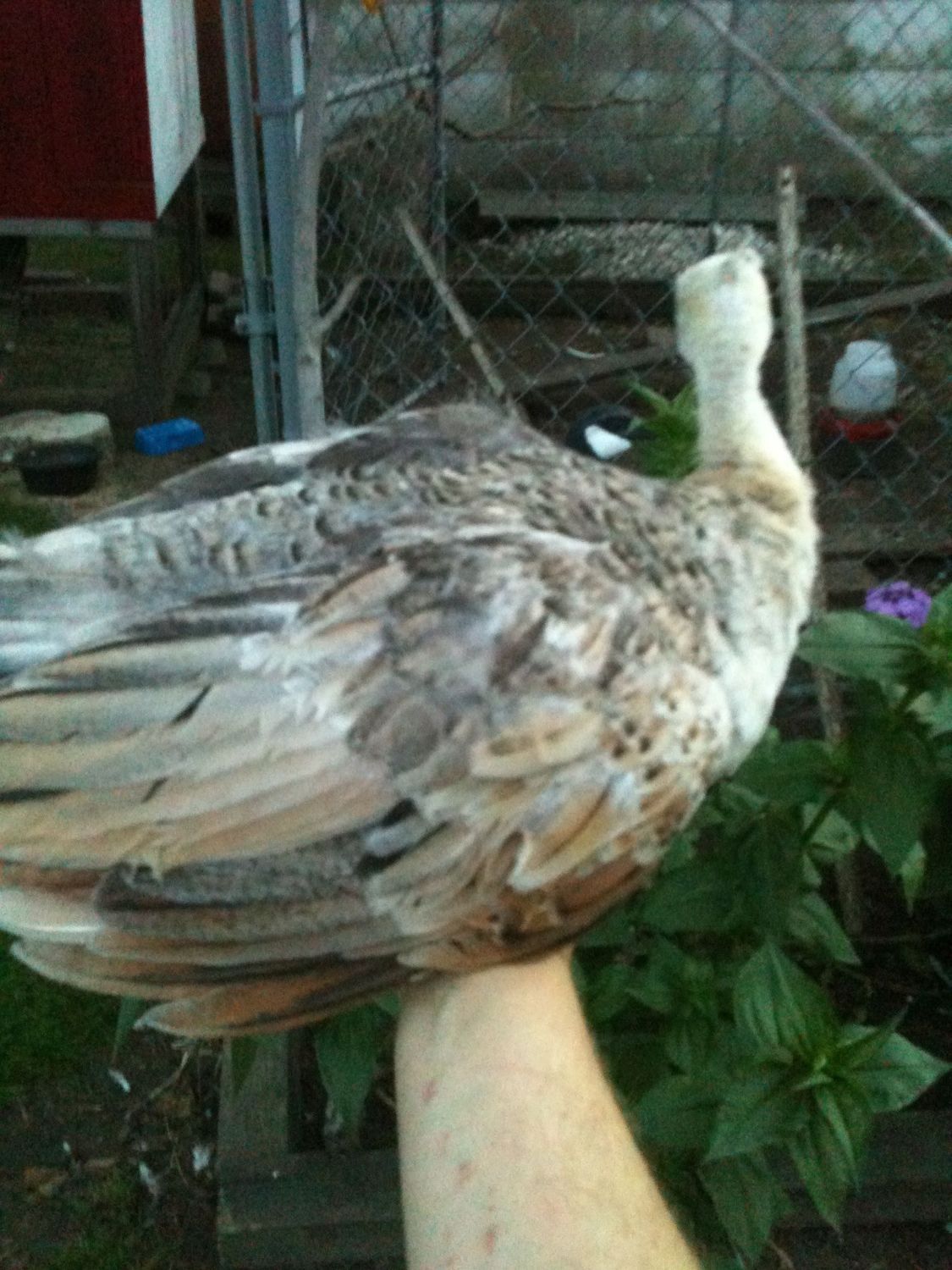 At this age I don't think it will do any good. If these were White peafowl at a year old it could help because hens tail feathers stay about the same length while males tail feathers tend to be different size.I will post some pics of their wings up close. How about there tails? Can you guys tell anything from those?