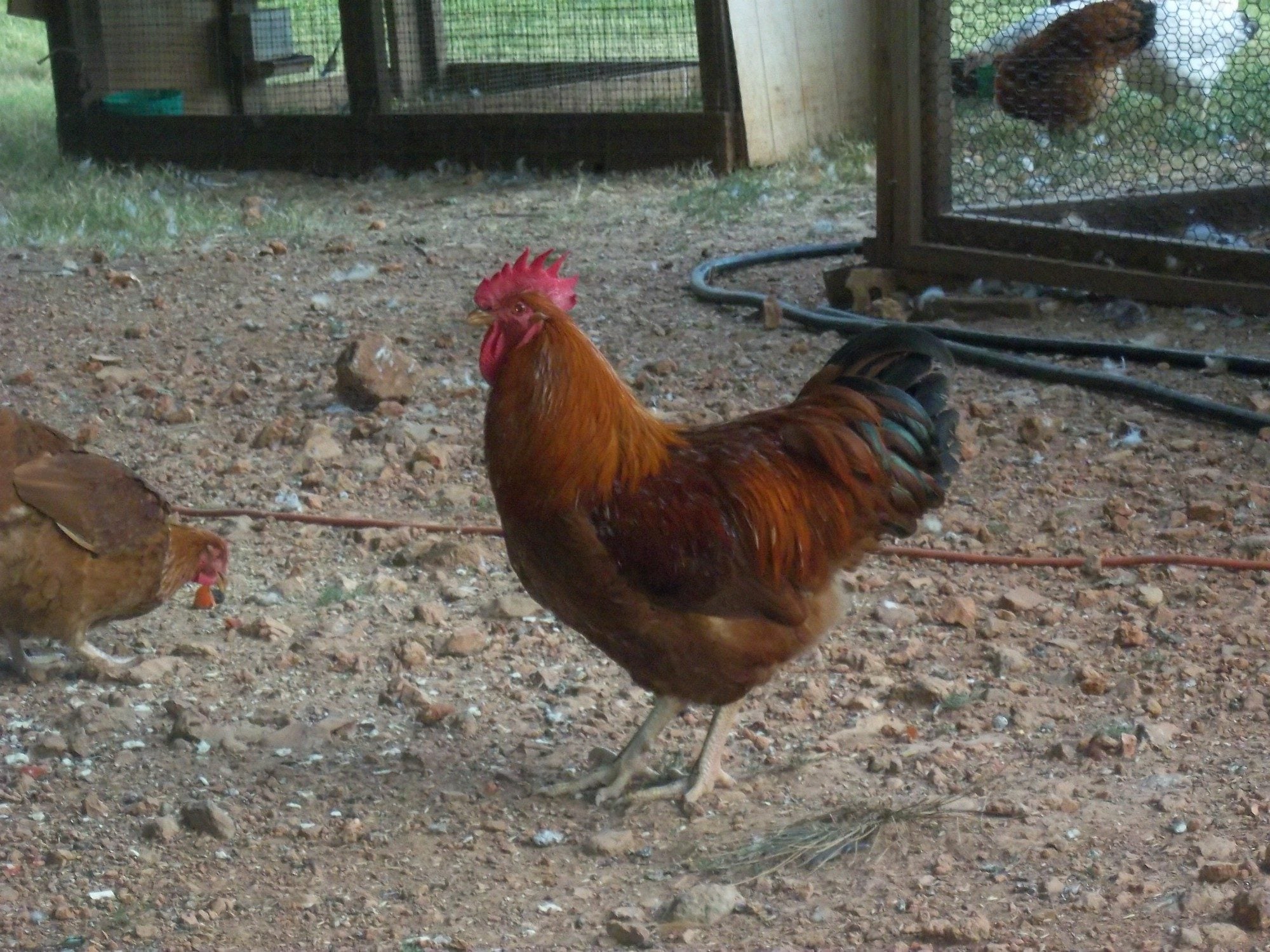 Thanks John for posting my pictures!! The rooster by himself is the cross from J-whip or XW poultry, half Germain half Reece line. The pullets are the same but the rooster with the pullets is Germain. About 23 days ago I put 11 eggs in the incubator from these pullets. Six eggs developed and that is what hatched. Nice chicks good and strong, maybe a little small since they came from the pullets. They do have good color. These pullets are just a little over 6 months old.
