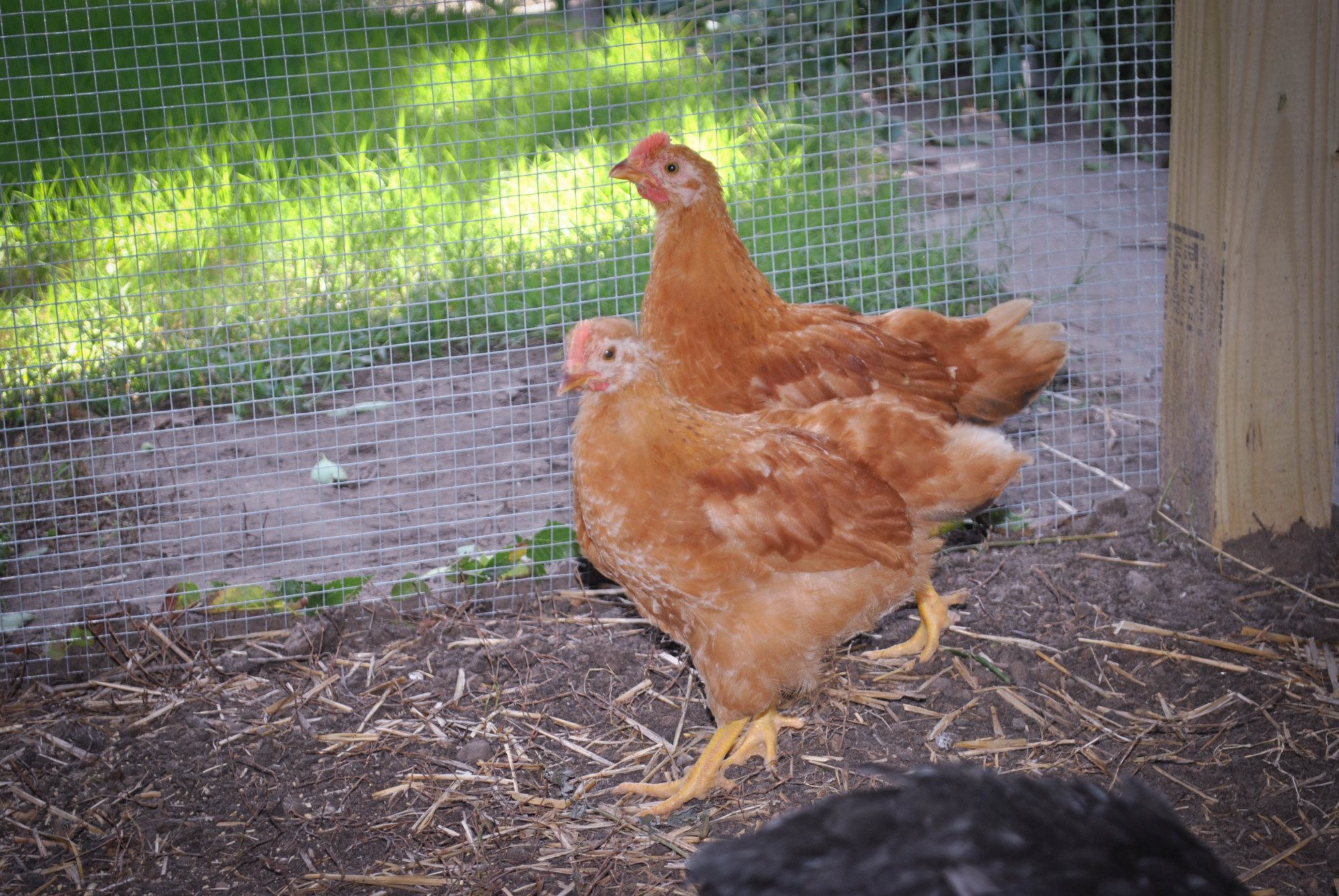 The 2 half&half boys are really turning it on right now they are few months behind the girls in maturity but they are now crowing and making passes at the older hens now too(they don't get much attention/equal participation yet  the poor fellers)LOL