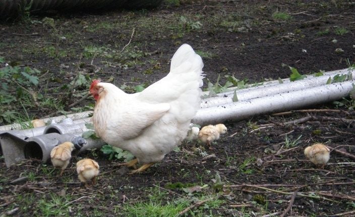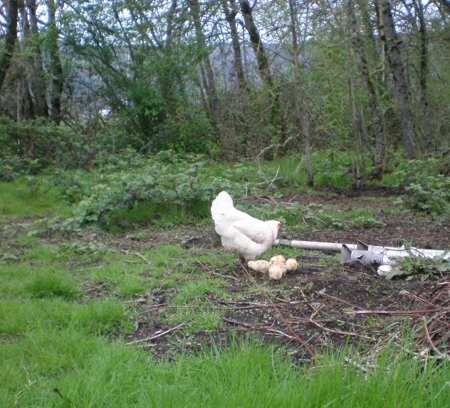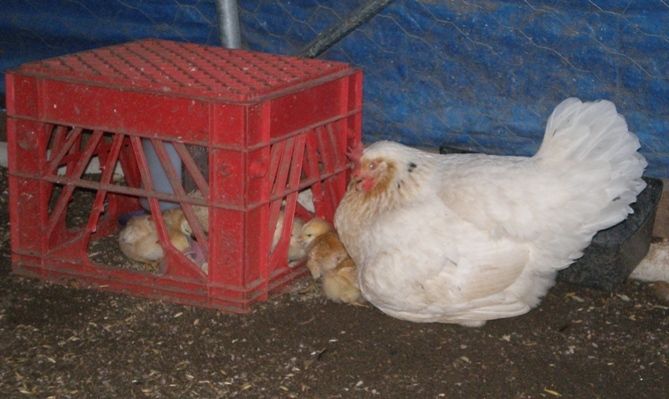 The chicks are not quite a week old here and are being raised in the community layer flock.