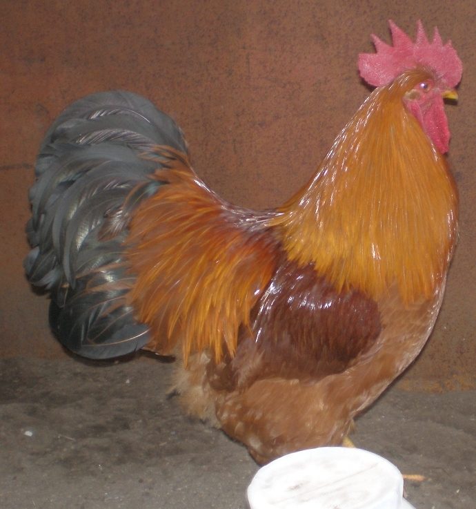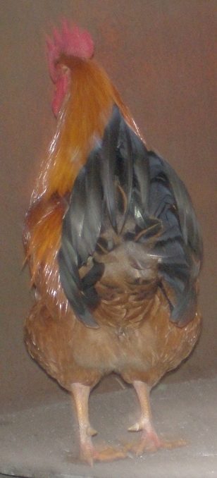 His color is not as far off as some would say (though it is not quite right) though there should be a more harmonious blend. The wings get us. Our wings are too dark. The especially dark wings contrast too sharply with the hackles and saddles. I have some variation in breast color, and hackles etc. I do not have any variation in the wing color. Good colored wings should be on our minds.