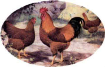 Yeah that's the old picture from way back before the one now was redone in the SOP its fuzzy looking but I've seen better examples of it too. Some of the hatcheries back in the eighties used to use it for their pics in their sales brochures. I think if you go back to the early eighties and beyond SOP these are the pics used I guess back till they were Black and White (which I'd get more out of than the pumpkin colored one of today). I'm sorry, it's a sorry excuse for a picture esp in something as important as the SOP IT'S A BOOK WHICH IS USED TO JUDGE BY and should be more clear in its on-goings for sure. Oh by the way look at that female what does she look like, almost identical to the GNH color HUH? Somethings fishy here and I want clearer understanding on such stuff. Why did Mr. Mongould have the painting changed to BUFF(orange) whatever color they are, to match his color he created when making his bantams HUH? the colors described in the SOP (and I'm sure they haven't been tainted since the 40's when the NH came about) DON"T match the picture in the book. I'm sorry but I'm not illiterate(can't type worth a hooey but....) or color blind either. Its got to be political somehow (It just smells fishy to me). Also too I've gathered this from more than one higher official on these German NH's, there seems to be some tone (something against) going across the pond to get them. Well if they don't like them get to spreading the word or better yet get the product (American NH) out there for people to be able to have and see.