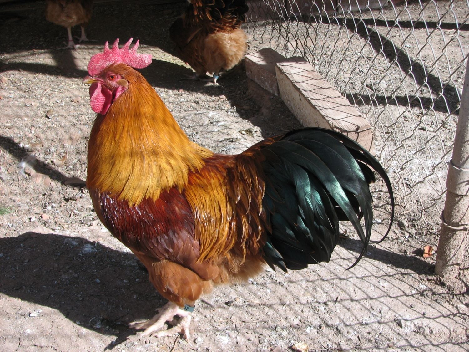 I just had to share this photo, taken today, of my "soon to be" cock (hatched first week of April '12). The sunlight on these German New Hampshires just makes them glow....