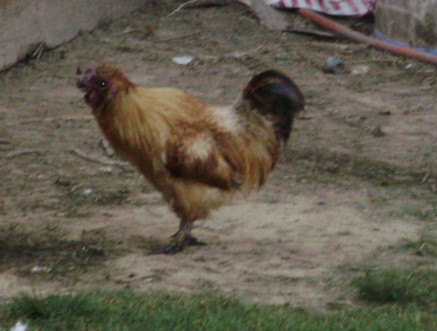 Silkie Roo BEFORE My Turkeys Spotted Him.