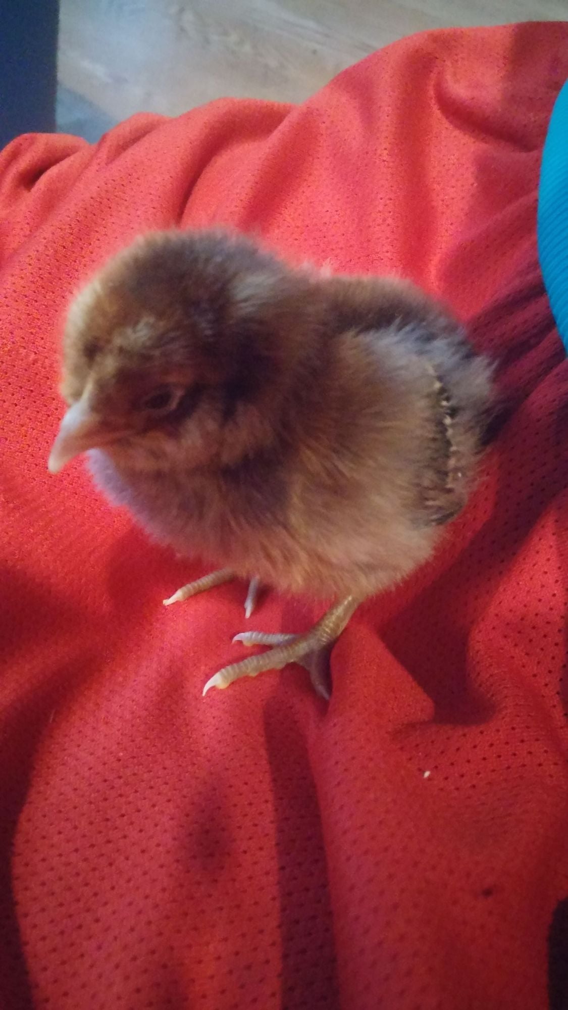 he likes to complain and chirped the whole way home!!! they are pretty warm and moving about eating and drinking! the others are tired and sleeping in a huddle!