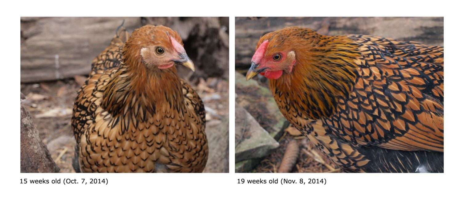 I suddenly noticed that my Wyandotte's comb and wattles have turned red! Below are comparison photos from last month and today. I think that I'll be finding some extra eggs soon! Although I have six laying hens, the Wyandotte is one of five pullets that I raised from two-day-old chicks this summer. (The laying hens I bought as adults last winter.) I haven't been through this excitement before.