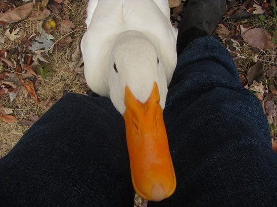 Casper weighs 7 pounds at a healthy weight. He's a very small Pekin, and yes, I do praise my good fortune! I'd like to get a Buff and a Blue Swede duck, both of which have a listed weight range of 5-6.25 pounds. Would the weight difference be alright? I certainly wouldn't want my drake to hurt the ducks in his enthusiasm. I could get him a couple of Pekin girls instead, but where would be the fun in that?