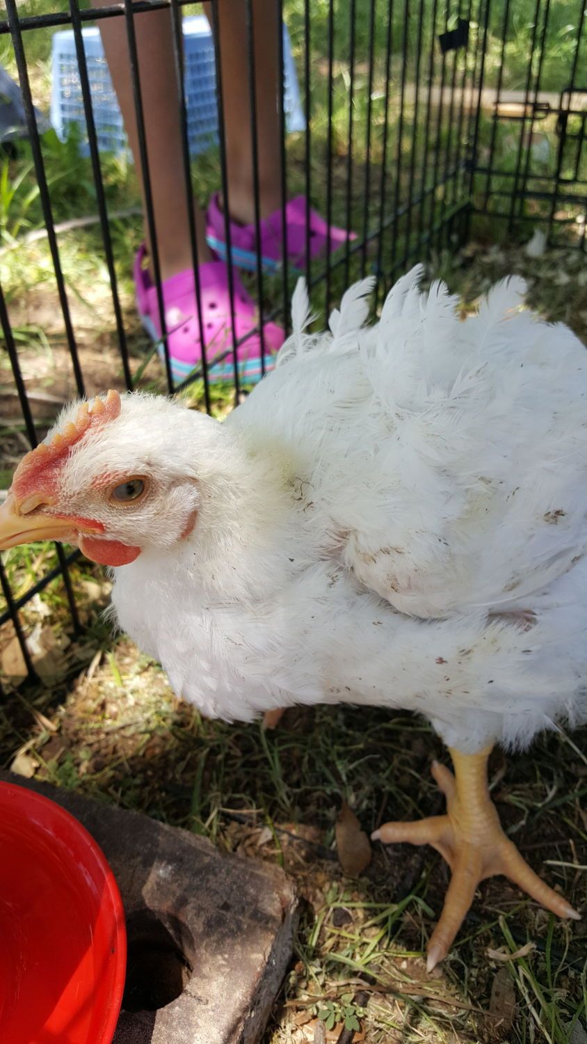 I was just going to say it does appear to look heavier, usually pointing toward it being a meat bird.A friend. That fiend got them originally at Tractor Supply. Yes, white one eats a lot. Discovering that he may be a meat bird![]()