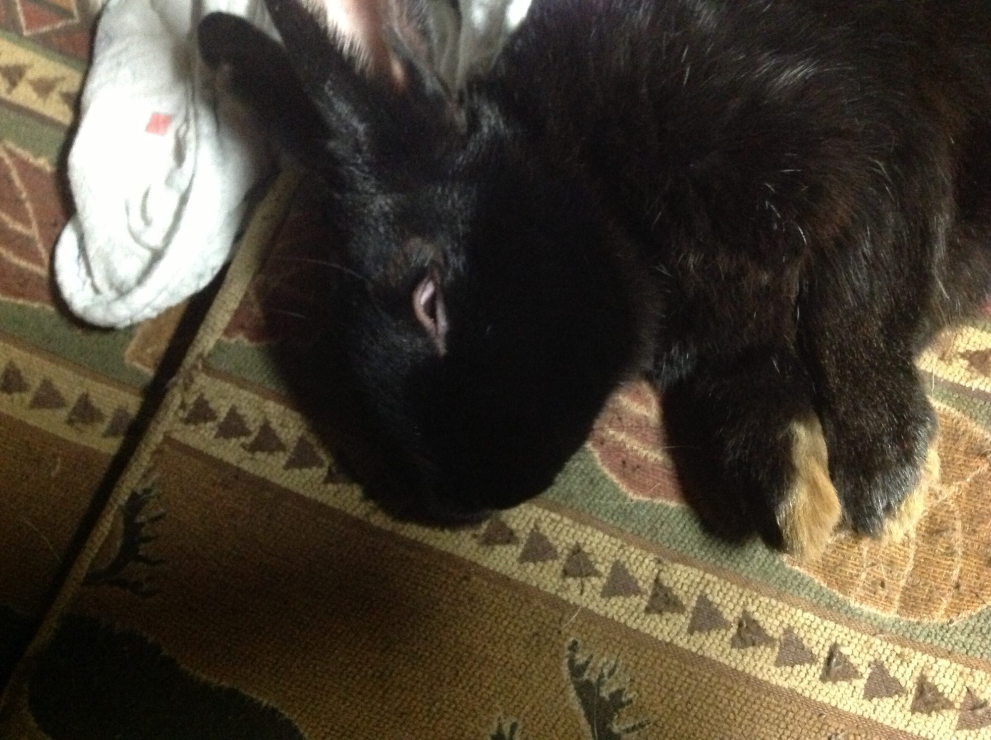Eek! We traded the geese for a buck rabbit. He's real sweet, but is awful to try & pick up.