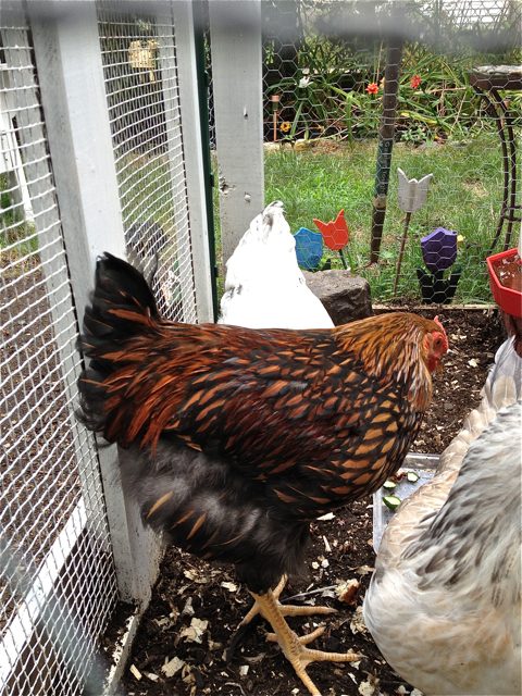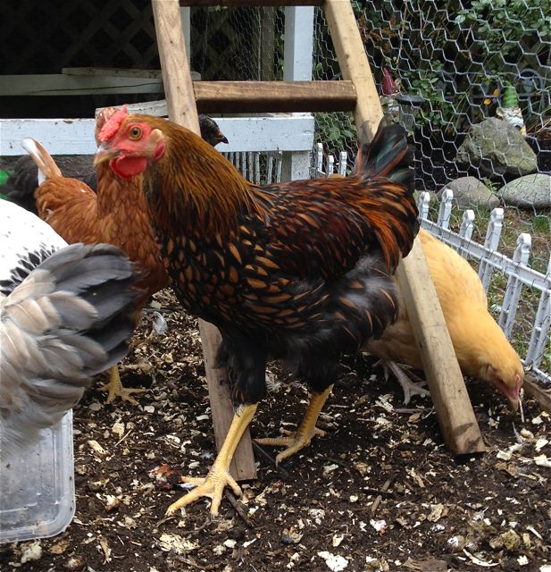 If you look at the latest pics, you'll see some really dark, shiny red coming in on the wings and on the back right in front of the tail. The feathers on the back, in front of the tail are called saddle feathers and only roosters will have those. Roosters will typically have much flashier coloring and not necessarily as even in their coloring as a hen. He also has a very large, well developed comb and thick legs/big feet. His neck feathers (hackles) are starting to look pointy as well.