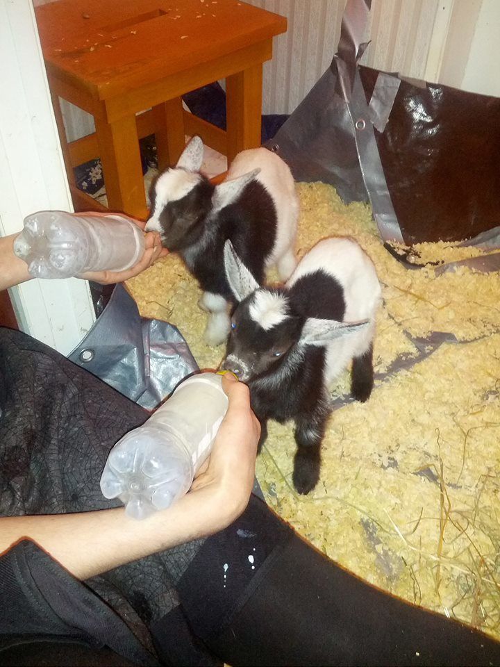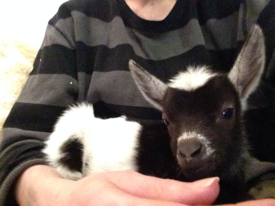 The little boy goat remains super attached to me. I spend time in their area with them a lot to make sure they get attention. For a while I was even using a warm washcloth to mimic a mother cleaning them. I know touch stimulation is important for mammals. Anyway I apparently have a lap goat! Both kids are getting super socialized, and have even met the dogs who they, unlike the adults, have no fear of. I'm also starting to get them used the idea that I pick the up and touch their hooves to make future grooming perhaps easier on all involved.(Their mom is practically a feral animal when it comes to hoof trimming. It's kinda stressful) Both kids seem to be coming along really well. I'm excited to see what they weight this evening.