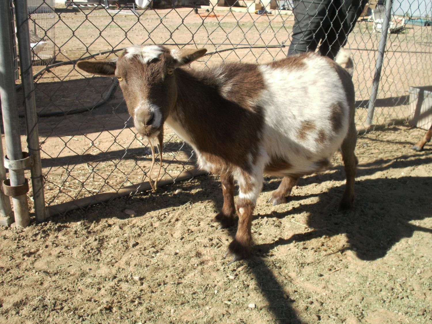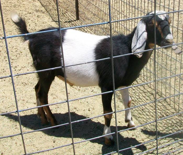 John yours look more like Nigerian Dwarfs or mix. The two bucks we have are Nigerian Dwarfs and Reggie is a small Nubian. I don't have a picture of Max yet. He is a Nigerian Dwarf and he is black with blue eyes. Has a bit of white on him. I will get a picture soon. In fact Dundee would be the best for your Doe for he is a old true to the task boy that will get her PG for sure for her first time. You can breed at any time now also. Goats come in season every 3 weeks but I kind of think observing our goats that this heat is holding them off some.