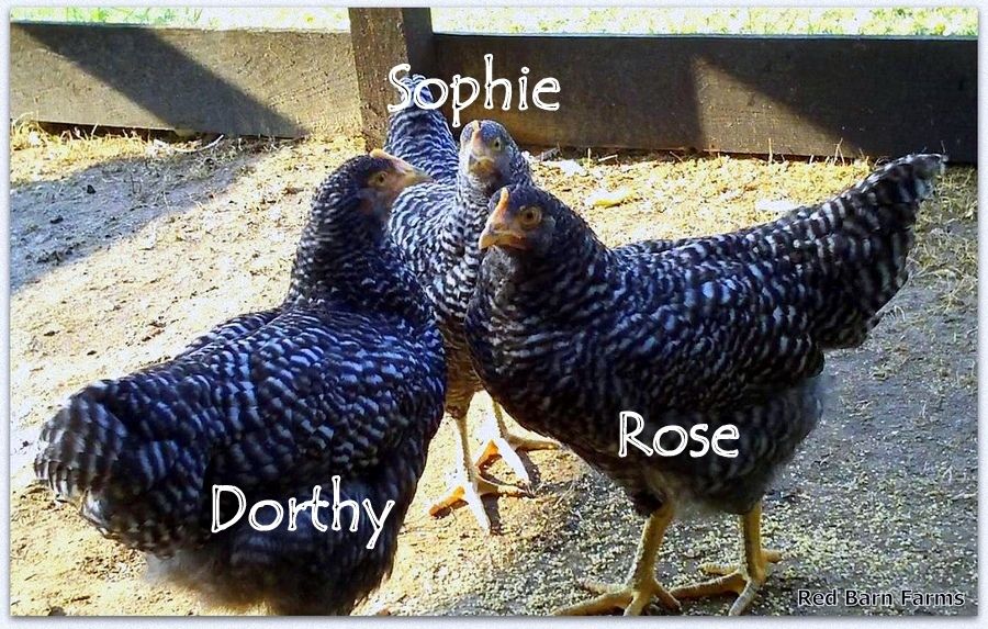 Aug 8, 2012 #11 Red Barn Farms ~Friendly Fowl~ 7 Years Joined Apr 12, 2012 Messages 3,158 Reaction score 198 Points 228 Location Kentucky Heartland Hello from The Bluegrass State! I have four Plymouth Barred Rocks which I named Dorthy, Blanche, Rose and Sophie myself! Here's three of the girls now! I think they are gossiping about Blanche being late! Blanche finally shows up after being on a very important date!